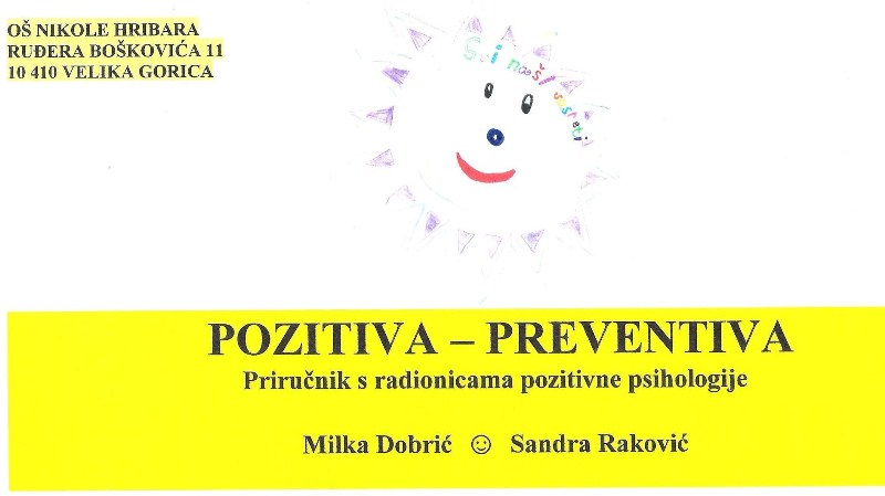 Program pozitivne psihologije. Program je namijenjen učenicima 4.-ih razreda. Provode ga učitelji na svojim satovima razrednog odjela, uz podršku stručne službe škole.Program su pokrenule pedagoginja i psihologinja, školske godine 2006./2007., sa željom da se s učenicima provode radionice prevencije koje razvijaju temeljne ljudske vrijednosti i vrline. Stručne suradnice su prvo same provele pilot projekt u dva četvrta razreda i paralelno provodile istraživanje koje je na kraju potvrdilo uspješnost i učinkovitost programa. Radionice su opisale u svom priručniku “Pozitiva-preventiva” koji sada koriste i učitelji. Neke su radionice dijelom preuzete iz knjige “Kako biti bolji”, Dubravke Miljković i Majde Rijavec, i prilagođene ( jer su bazično namijenjene za srednjoškolce).