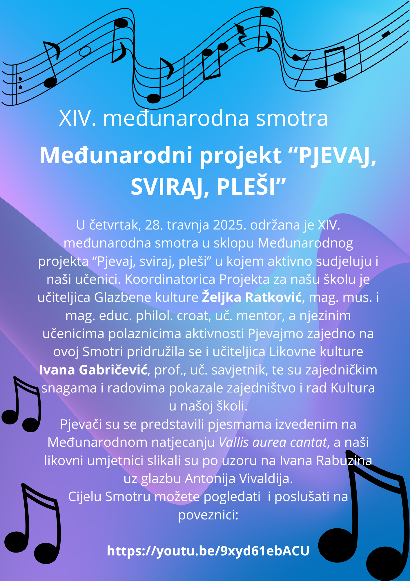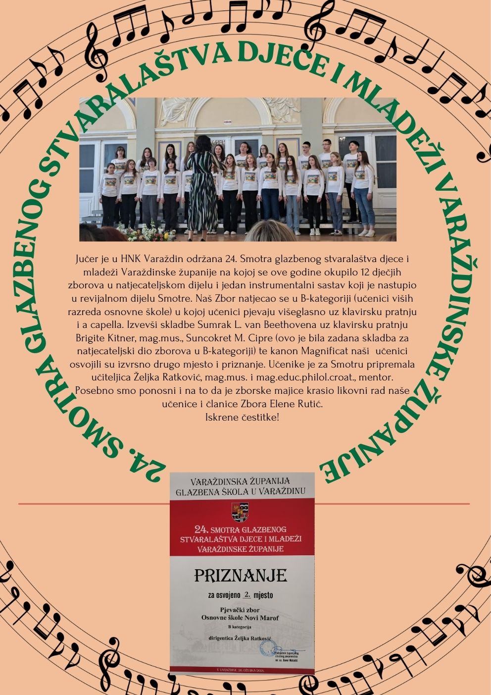 Mentorica učenici je Željka Ratković, mag. mus. i mag. educ. philol. croat.