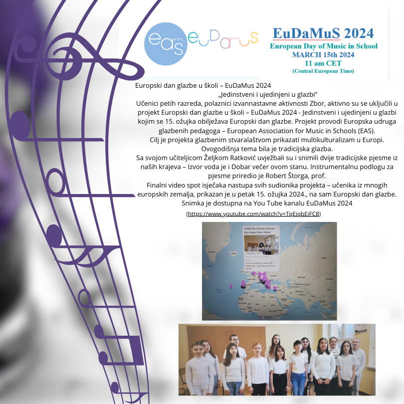 predaje Glazbenu kulturu u odjeljenjima: