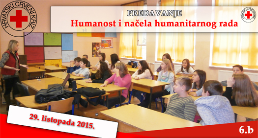 Dana 29. listopada 2015., predstavnica Gradskog društva Crvenog križa Novi Marof, gđa Dijana Ivanušec, održala je edukativnu radionicu »Humanost i načela humanitarnog rada« u 6.b razredu.