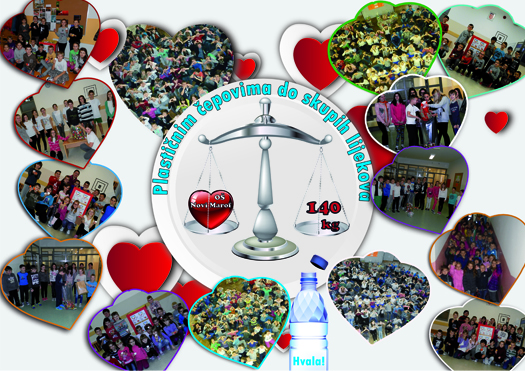 Velika HVALA svim učenicima, roditeljima i učiteljima koji su se uključili u akciju kojom pomažemo kupnju skupih lijekova za Udrugu oboljelih od leukemije i limfoma (UOLL) Čakovec . Skupljeno je hvale vrijednih oko 140 kg čepova.
