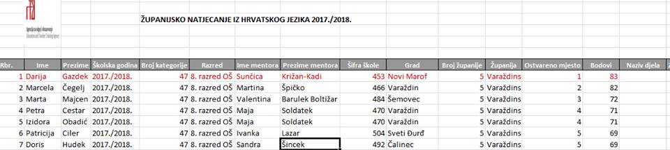 5. ožujka, najvažniji dan. DARIJA GAZDEK iz 8. d po drugi put postala je županijska prvakinja iz hrvatskoga jezika, a FRAN RABUZIN iz 6. c pozvan je na Državnu smotru Lidrano sa svojim novinarksim radom "Kako me zagrlila Bosna". Čestitke učenicima!!!