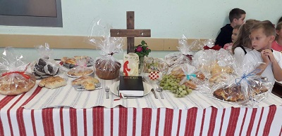 Dana 19. listopada 2018. godine u našoj školi održala se priredba povodom Dana kruha i zahvalnosti. Učenici nižih razreda naše škole pripremili su prigodni programa koji je vodila vjeroučiteljica Marina Krbot. Kasnije nam se pridružio pater Nikola Šantek s kojim smo se pomolili i koji je blagoslovio nas i hranu. Nakon priredbe počastili smo se ukusnim domaćim pecivima i kruhom, koje su pripremili naši roditelji, te bake i djedovi. Za slike iz područnih škola kliknite na Više.