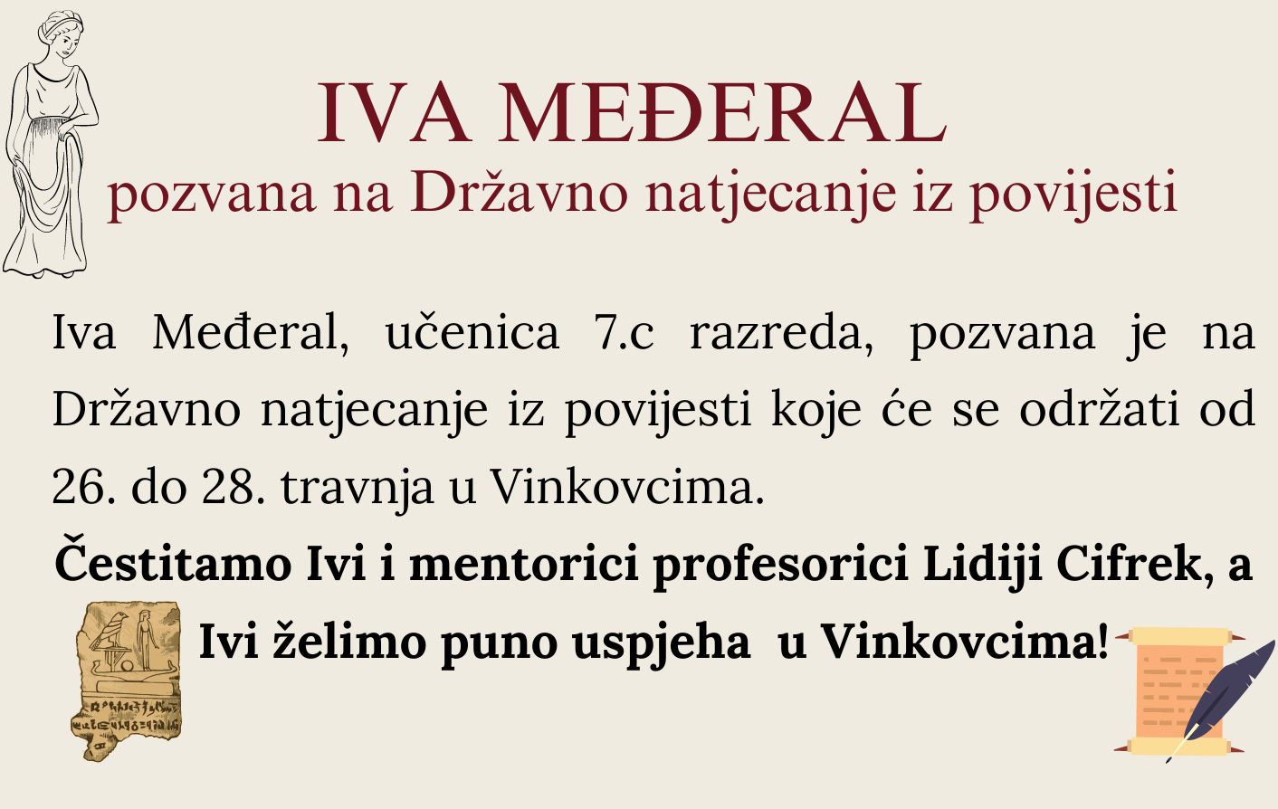 Iva Međeral- pozvana na Državno natjecanje iz povijesti