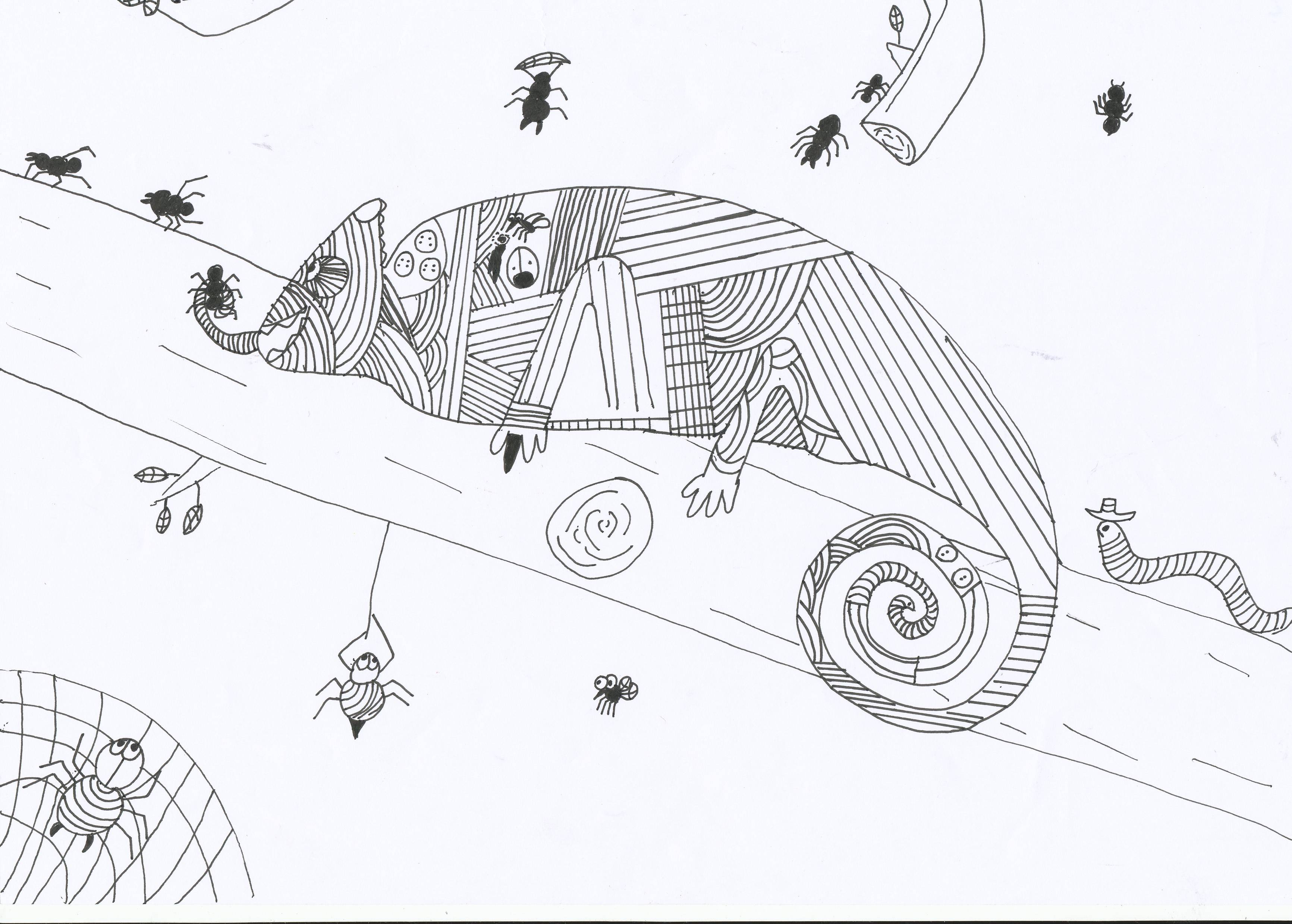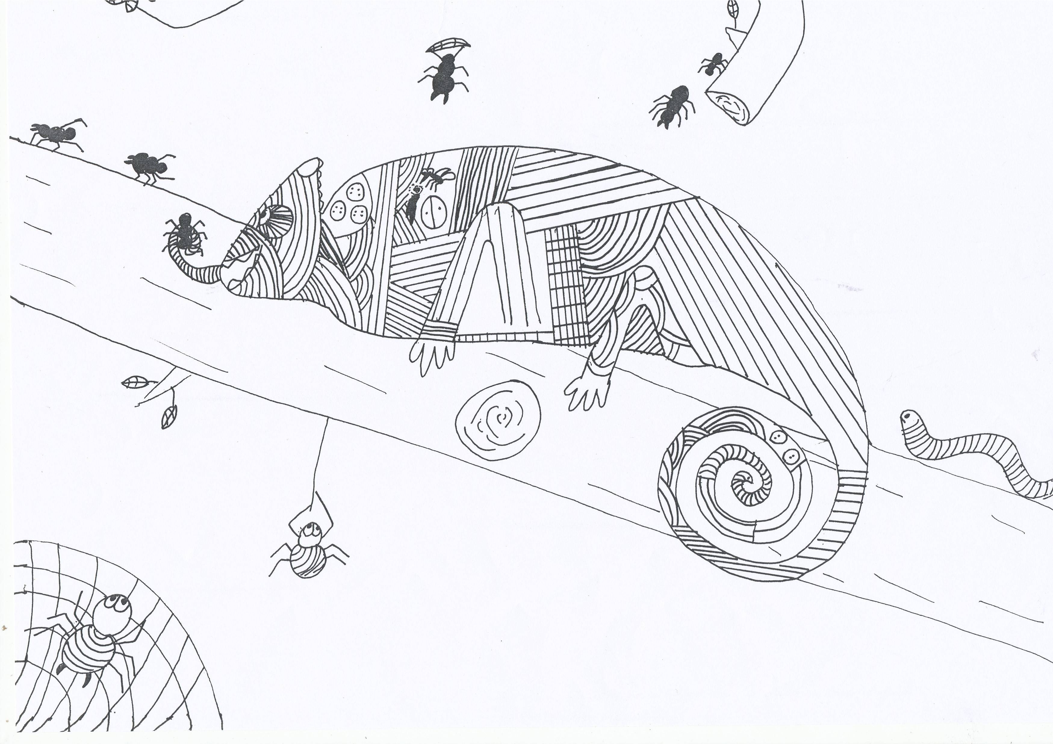 Pažljivo promotri sliku kameleona na grani i uoči 10 razlika.