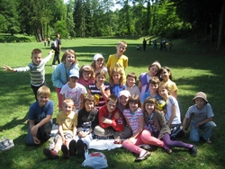 Nakon ručka su im se pridružili i četvrtaši koji su posjetili Krapinu. Slijedile je igre na livadi(igre loptom, badminton, frizbi,...) i šetnja oko jezera.