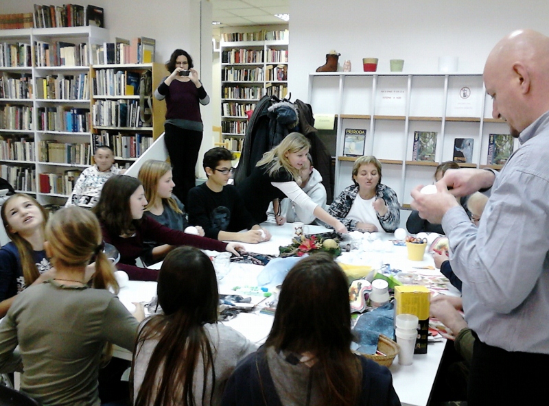 OŠ Nikola Tesla, Udruga za podršku osobama s intelektualnim oštećenjima Grada Zagreba (Klub Vjeverica), Knjižnica Prečko te Centar za kulturu Trešnjevka (Klub Melisa) u četvrtak, 4.12.2014. prvi su puta zajedno sudjelovali na inkluzivnoj međugeneracijskoj adventskoj radionici koja se održala u prostorima Knjižnice Prečko.