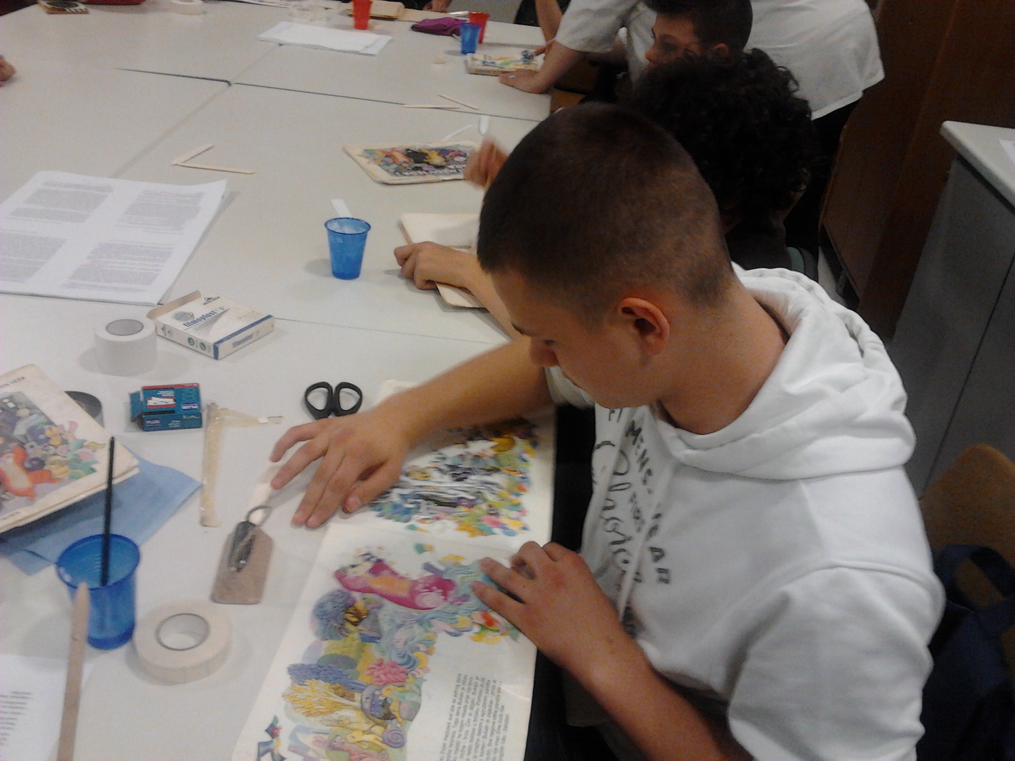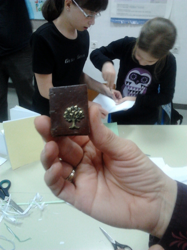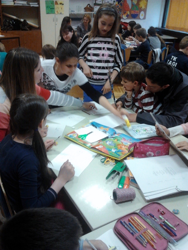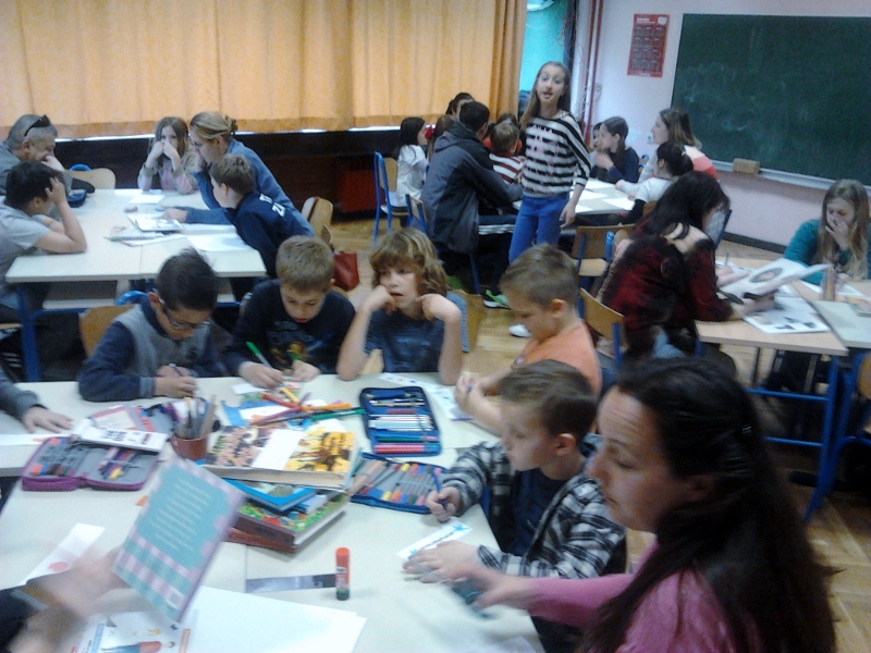Za učenike četvrtih razreda organizirana je i radionica "Izrada knjižica brošurnim uvezom". Stručnom vodstvu radionice, gospodinu Zoranu Vidakoviću - nastavniku likovne kulture iz Đurđevca, pridružile su se i učiteljica Marijana Kovačić i školska knjižničarka. Učenici su kroz dvosatnu radionicu praktičnim radom usvojili vještine izrade i uveza jednostavnijih knjižica dobivši pregršt novih zanimljivih i kreativnih ideja kada i na koji način najbolje koristiti svoje male unikatne radove.