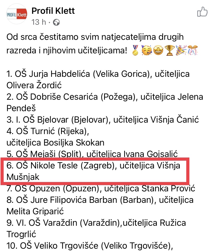 Učenici 2.c razreda osvojili su 6. mjesto u finalu Izzi Kvizzija na nacionalnoj razini. Borba je bila neizvjesna do samoga kraja jer su ušli u kviz puni euforije i entuzijazma te želje da osvoje glavnu nagradu, pametnu ploču. Na kraju svega, zaključili su da su oni pametniji od pametne ploče, ali isto tako i bogatiji za novo iskustvo, ojačan timski duh, suradnju i zajedništvo. Utješne nagrade, lopte i trube, donijet će u razredni tim još više veselja i sportskog duha, Hvala roditeljima na suradnji i podršci koju su nam pružali tijekom rješavanja online zadataka te uvelike pridonijeli našem uspjehu. Fotografije se nalaze pod "više". Učiteljica Višnja Mušnjak