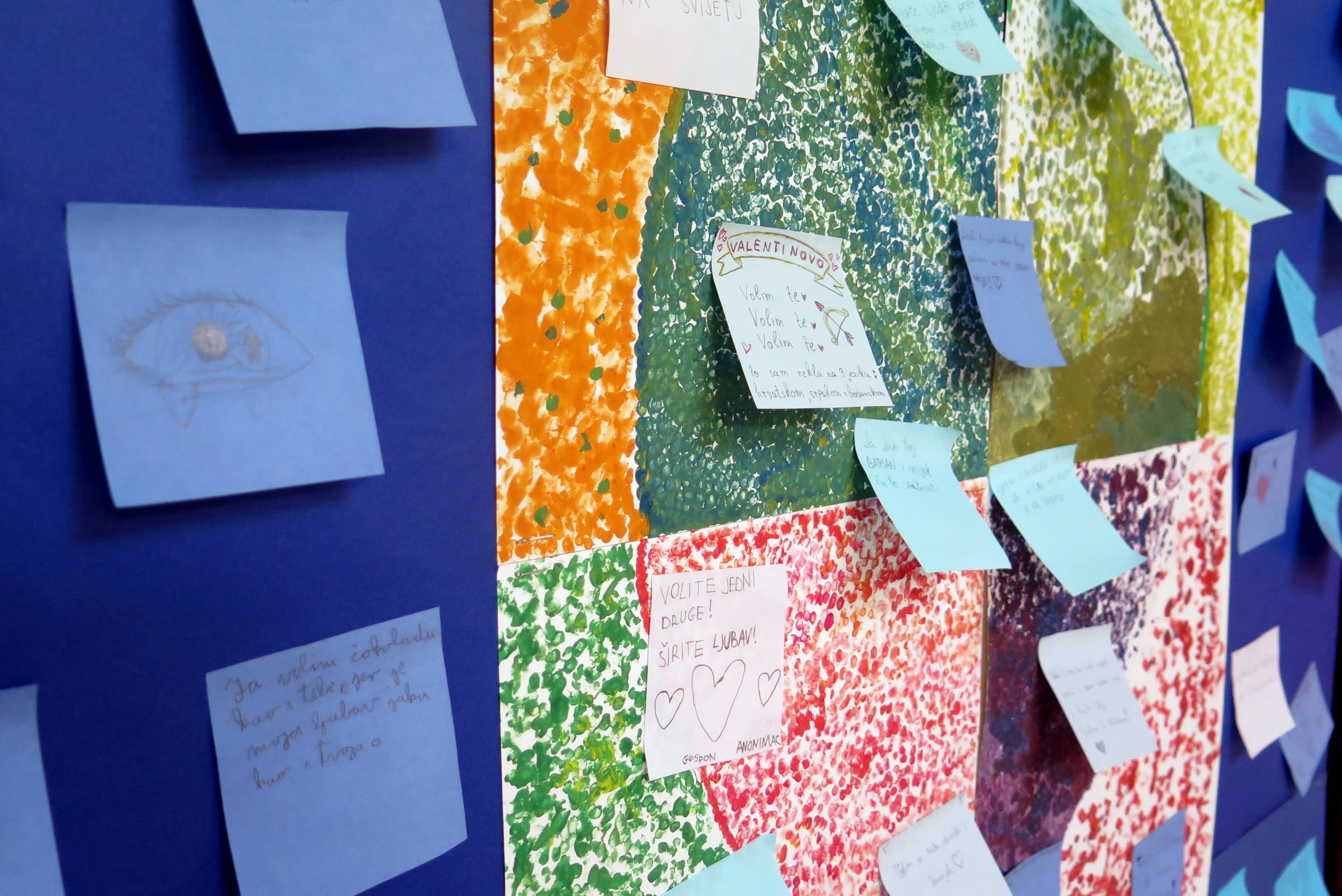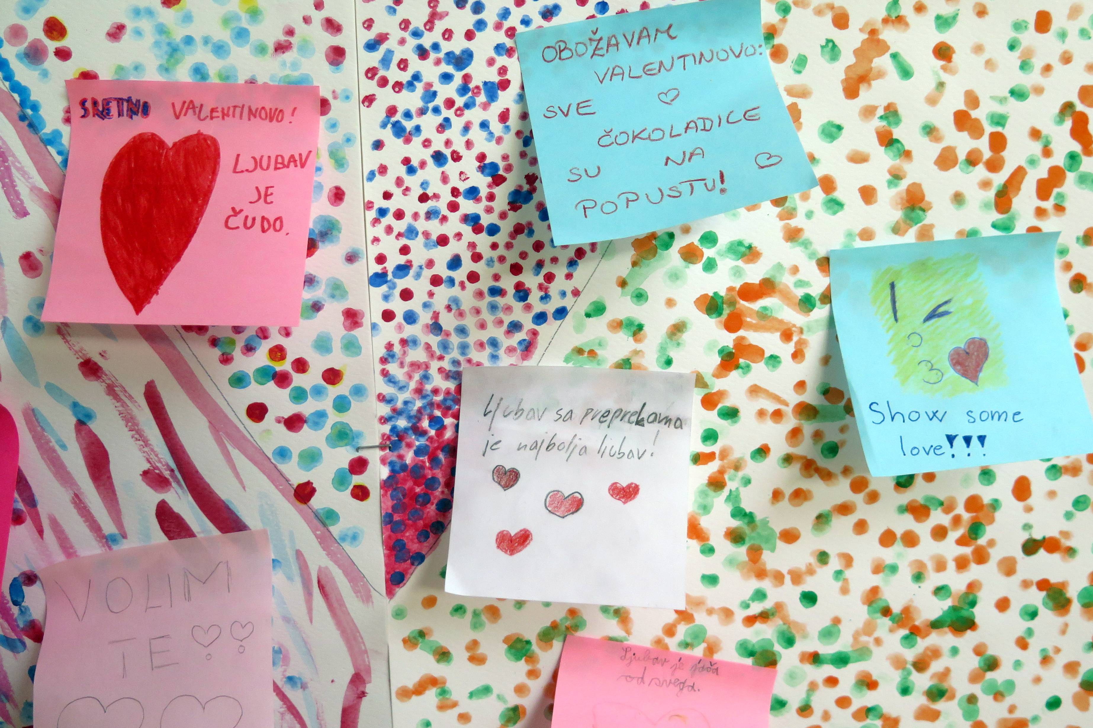 Likovnim radovima, plakatima te post-it papirićima s crtežima i pozitivnim porukama učenici su širili ljubav, razvijali zajedništo i na kreativan način obilježili Valentinovo.
