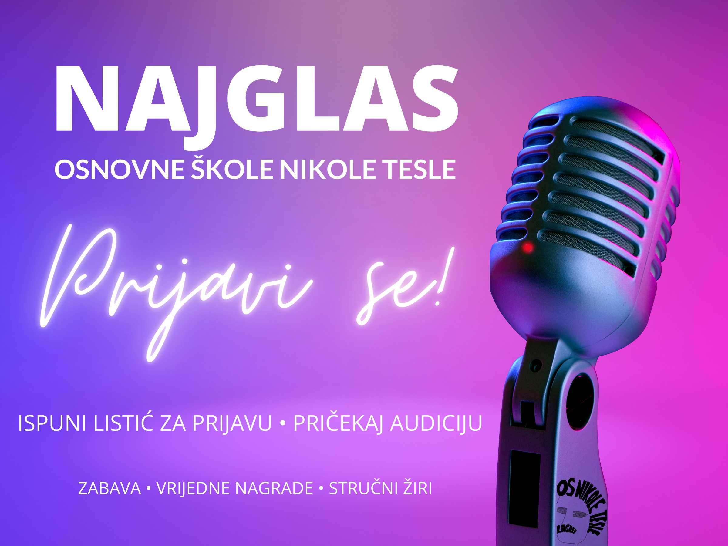 Poštovani roditelji i dragi učenici škole, s veseljem najavljujemo pjevačko natjecanje NAJGLAS u našoj školi!