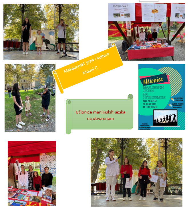 U programu su sudjelovali i učenici makedonskog jezika i kulture iz OŠ Nikole Tesle i OŠ Augusta Harambašića pod vodstvom njihove učiteljice Despine Velinske. Našu školu su predstavili učenici Martin Budna, Kijara Mijalkovska, Teodora Isakoski i Jana Dimoski koji su uz pratnju violine zapjevali Makedonsko djevojče i recitirali pjesmicu Daj mi – na ti. Njihov nastup je bio vrlo dojmljiv.