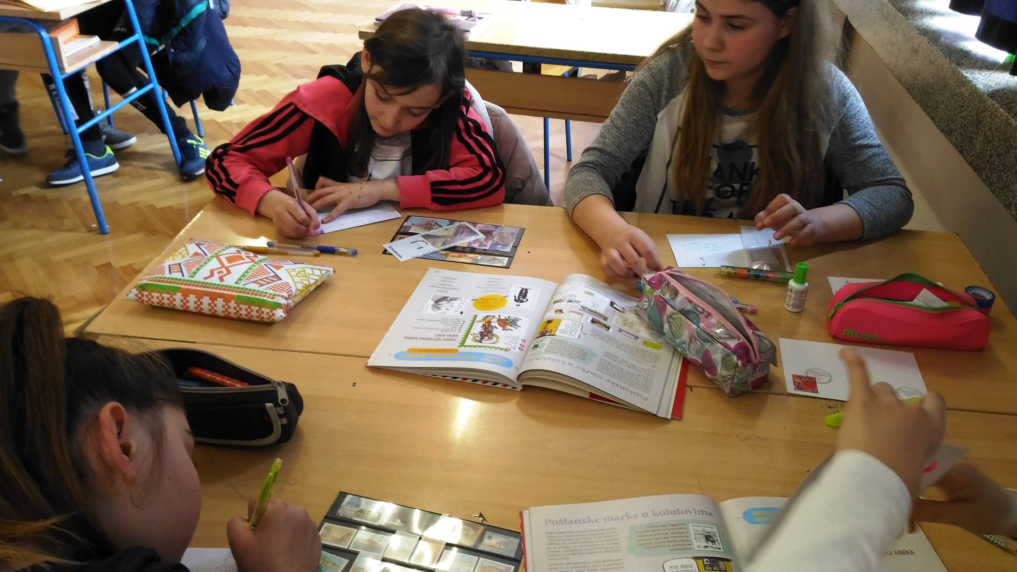 Uz pomoć knjige Otkrivam poštanske marke, autora Ivana Librića, „čitali“ su marku. Upoznali su se s filatelističkim priborom i materijalima. Dobili su različite poštanske markice i pomoću povećala tražili glavne dijelove marke. Učenici su potom na omotnicu nacrtali svoju poštansku markicu i napisali adresu primatelja i pošiljatelja.
