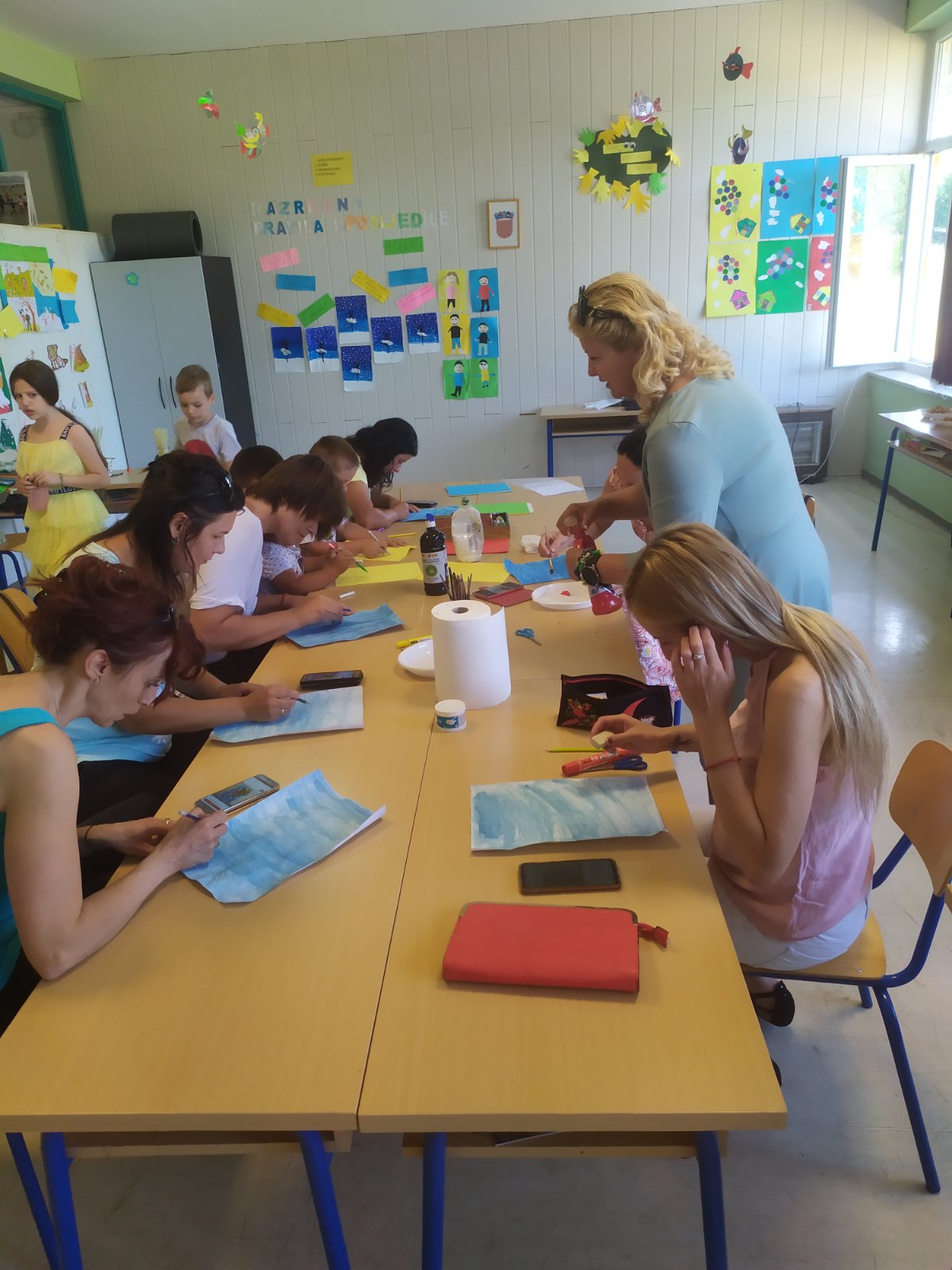 Likovna radionica imala je za cilj pokazati svu kreativnost koju imaju roditelji. Na početku radionice roditelji su dobili upute (kratki video koji pokazuju na koji način trebaju uraditi zadani zadatak). Vrlo brzo su se uhvatili posla, bojali, rezali, sastavljali, stvarali 3 D sliku. Učenici su vjerno nadgledali vješte ruke svojih roditelja, hvalili, pomagali… upozoravali ako nešto nije prema uputama.