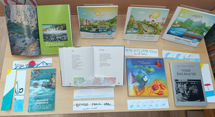 Učenici 4. razreda OŠ Obrovac sudjelovali su u radionici „Pjesme o vodi“ koju je vodila školska knjižničarka. Čitali su pjesme i tekstove o vodi, a u kreativnom dijelu radionice izradili su straničnike s izrekama o vodi. U školskoj knjižnici postavljena je izložba straničnika nastalih na radionici i publikacija koje obrađuju naslovnu temu voda.