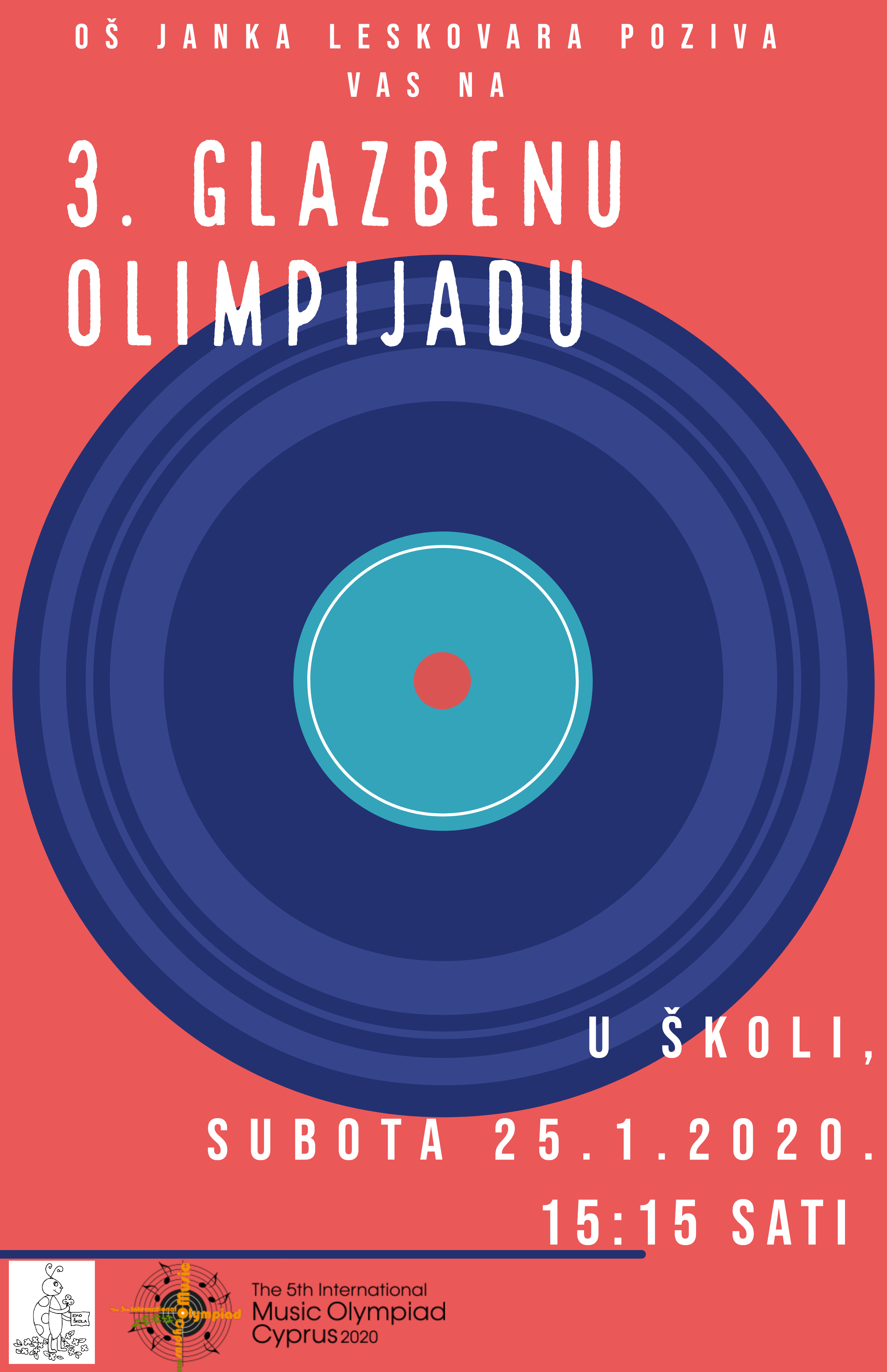 Ovu subotu, 25.1.2020. u skolpu 3. hrvatske glazbene olimpijade održat će se koncert u našoj školi u 15 15 sati. Dođite i uživajte u zvucima mladih glazbenika.