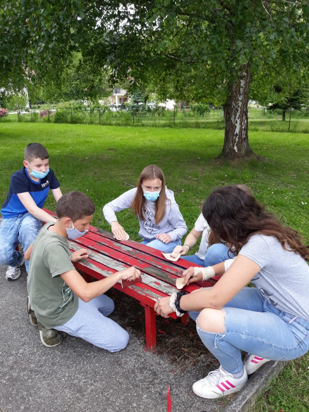 U akciji su učenici obojali klupe u dvorištu škole te uz pomoć odraslih oplemenili okoliš i učinili ga ugodnijim za boravak.