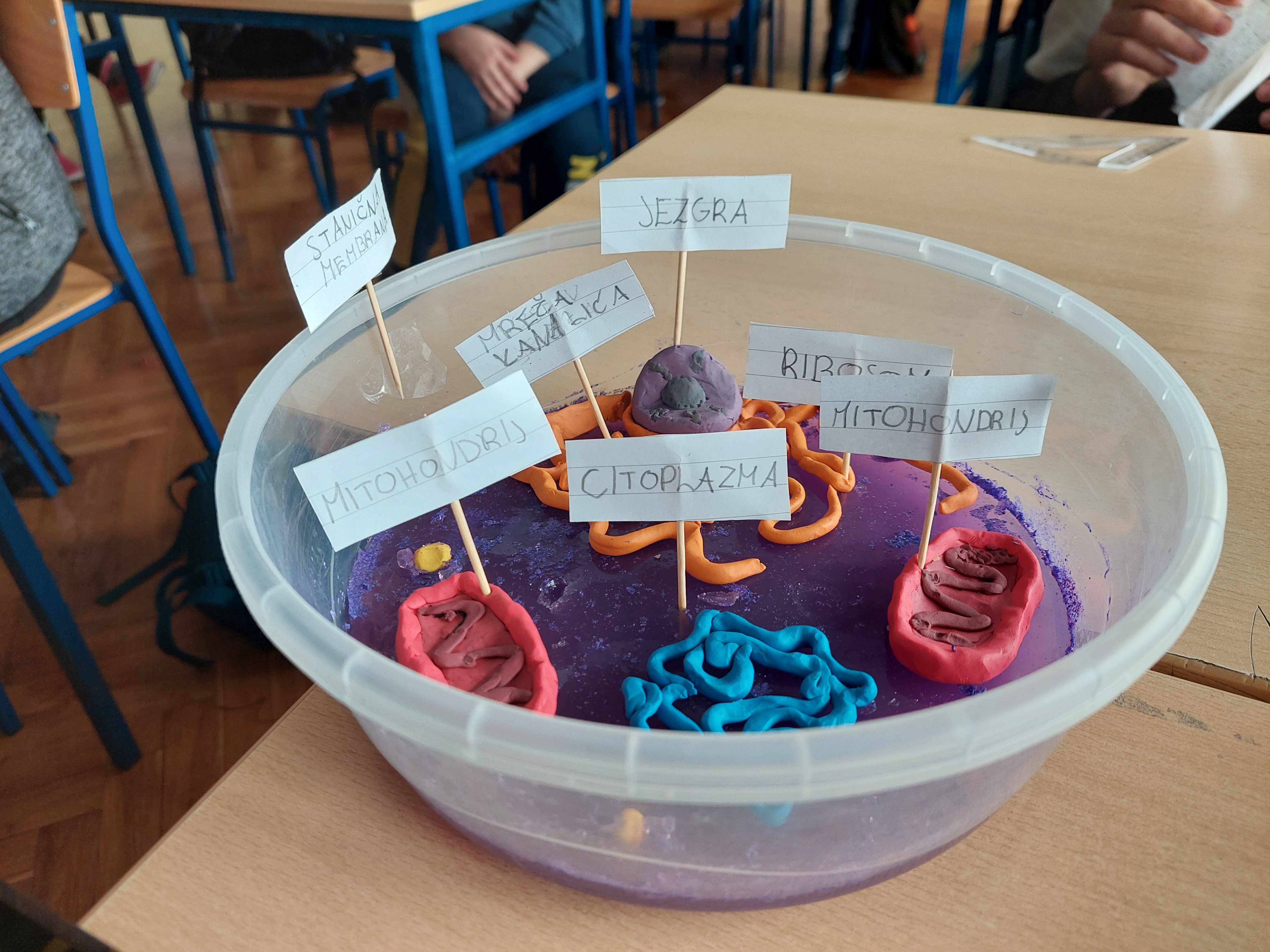 Učenici sedmih razreda za sat biologije vrijedno i kreativno pokazali su svoje viđenje stanica. Naučili su da ne postoje samo autobusne stanice već da postoje i stanice koje izgrađuju naše tijelo. Modelirali su stanice od raznih materijala: glinamola, plastelina, drva, kartona, striopora i glinamola. Rezultate možete pogledati na fotografijama. Takav način rada olakšava učenje i pamćenje bitnih pojmova te uvelike potiče maštu i kreativnost kod učenika.