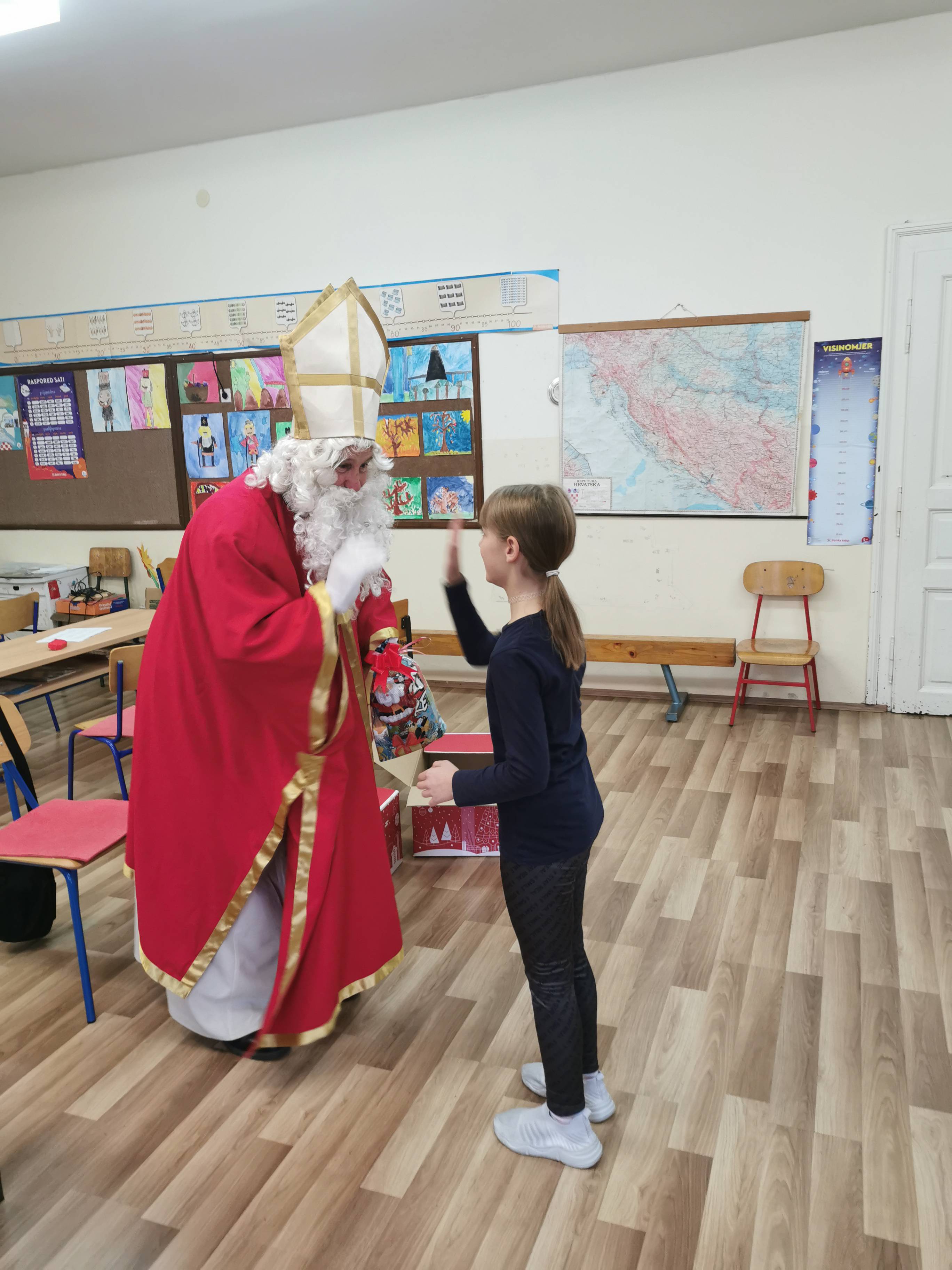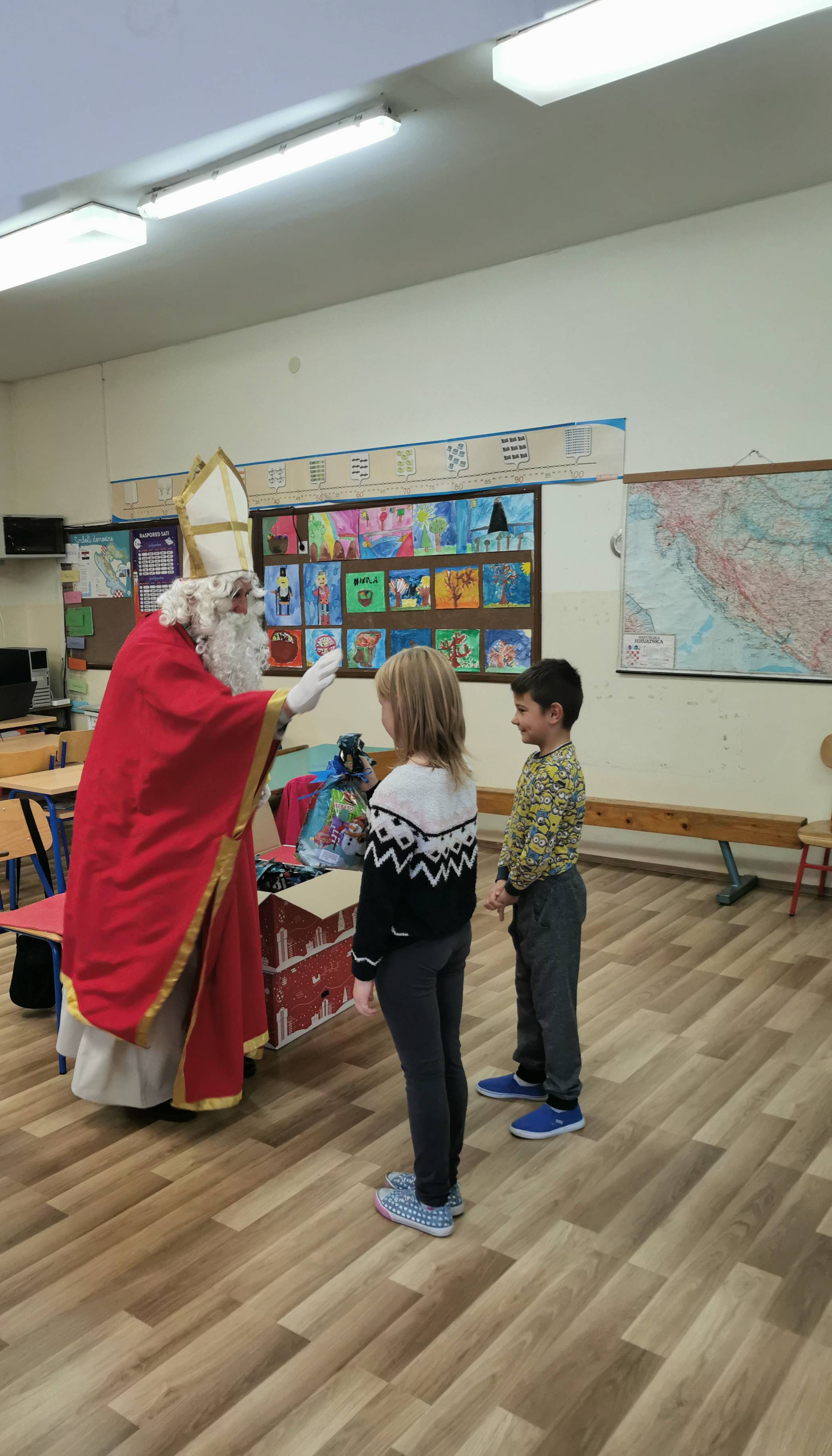 Sveti Nikola je posjetio i PŠ Sopot gdje su mu učitelji s učenicima pripremili kratku priredbu u kojoj su učenici pjevali i recitirali različite pjesmice.