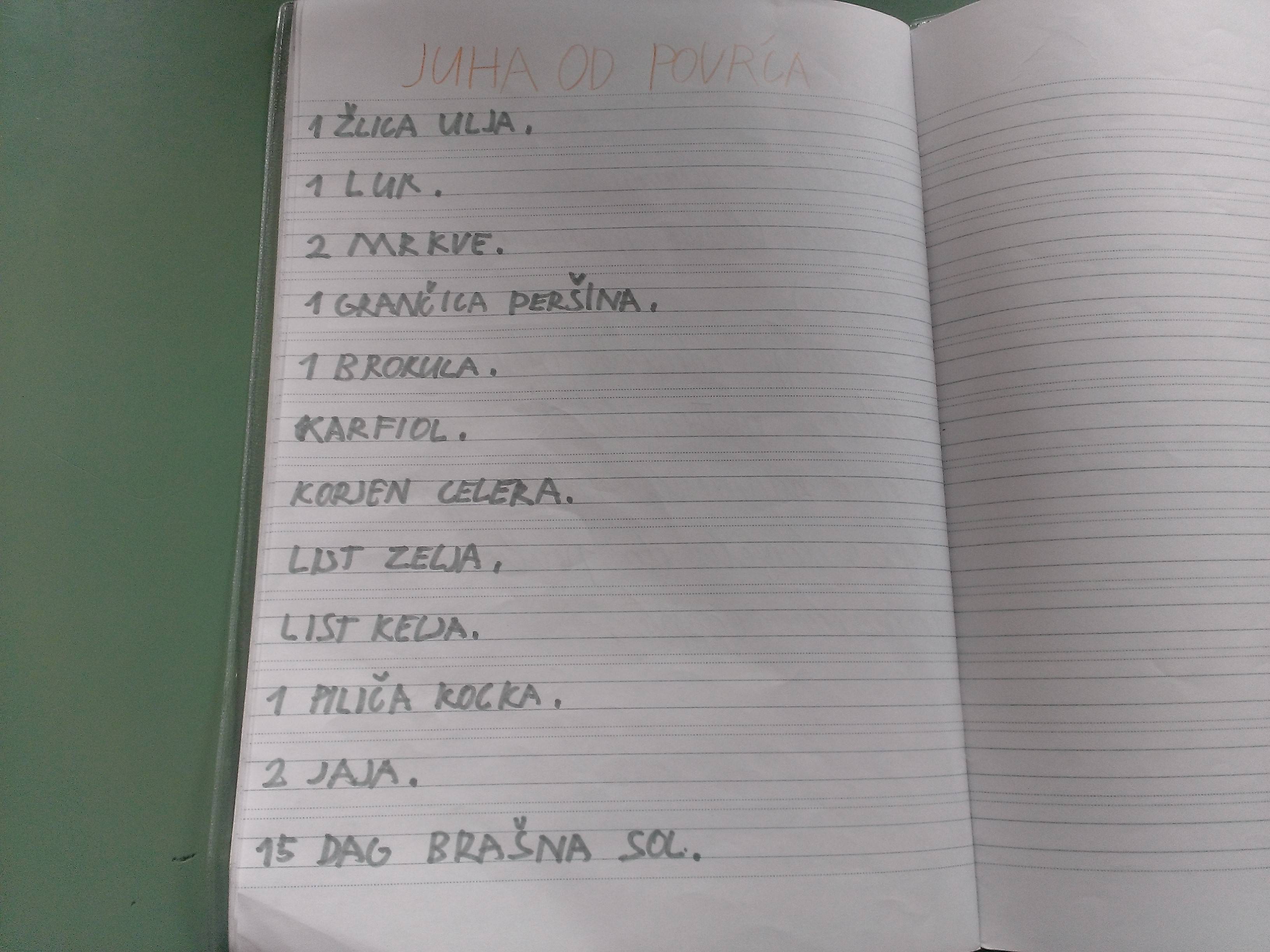 Zamolili smo i majku naše učenice Martine Lazar inače kuharice u hotelu u Tuheljskim toplicama da nam uz našu pomoć u našoj kuhinji skuha jedno zdravo jelo.Svi smo joj pomagali i skuhala nam je krem-juhu koja je osim što je zdrava i jako ukusna.Zahvaljujemo se teti Maljčiki i teti Božici na suradnji.
