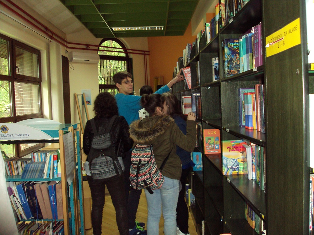 Nakon pisanja testa, razgledali smo plakate pristigle na natjecanje i s ekipom učenika IV. OŠ uputili se u razgledavanje grada Čakovca. Budući da nas vrijeme nije poslužilo i da je kiša padala cijeli dan, počastili smo se sladoledom i pošli u razgledavanje Gradske knjižnice „Nikola Zrinski“.