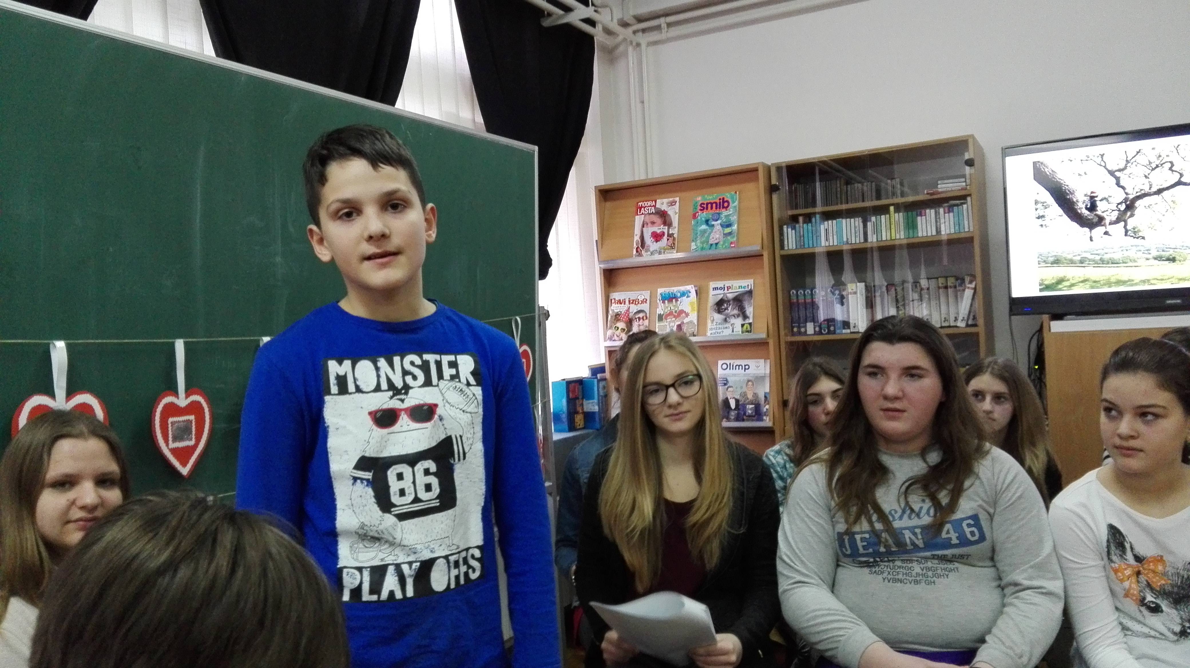 U školskoj je knjižnici povodom proslave Valentinova održan recital ljubavne poezije pod nazivom "Hrvatski pjesnici o ljubavi". Pod satom Hrvatskog jezika i 5. c razred bio je među brojnom publikom.