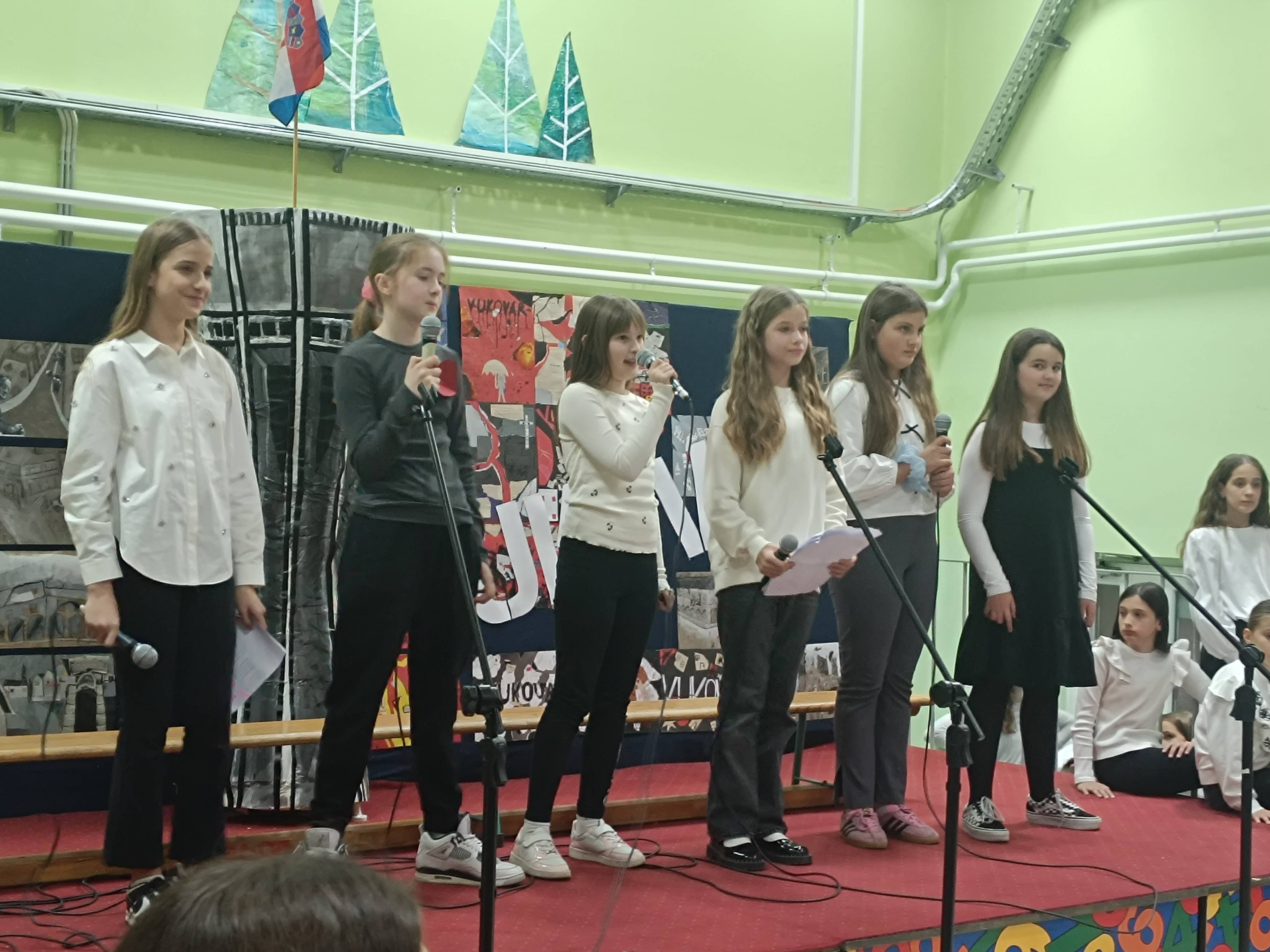 Prigodni program posvećen Vukovaru, Škabrnji i žrtvama Domovinskoga rata pripremili su Mladi kroatisti sa svojim nastavnicama i suradnicima.