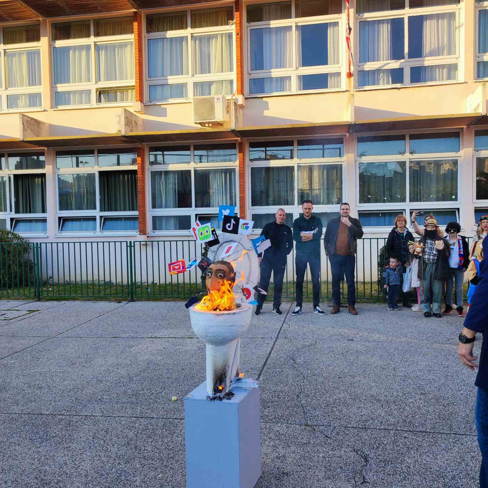 Karnevalska svečanost započela je čitanjem optužnice Krnji, strašnoj Skibidi Školjki. Njezine prijestupe pročitale su Karmela Politeo i Sara Cvrtak, učenice 7. c razreda. Uz usklike osuđivanja i negodovanja, maškarasta povorka otpratila je Skibidi Školjku do dvorišta gdje joj je presudio čuvar naše škole (Žele).