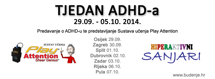 Diljem Hrvatske održavat će se predavanja o danas najčešćem poremećaju školske djece koji je prisutan i kod odraslih - ADHD. Također, na predavanjima će biti predstavljen i Sustav učenja Play Attention.