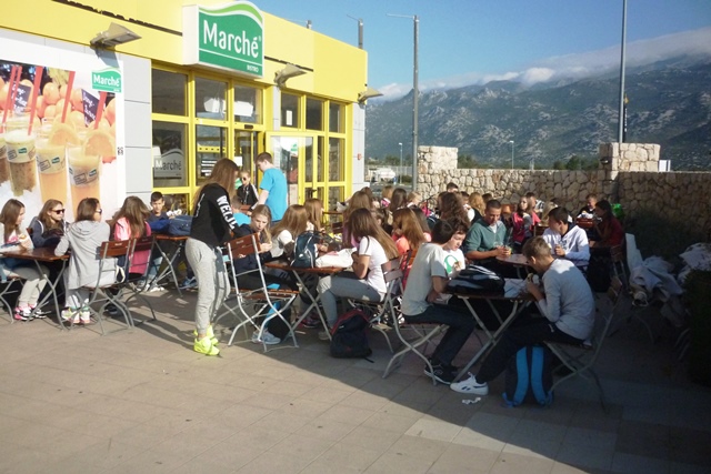 Čeka nas dug put pa smo malo odspavali. Nakon što smo odspavali počela je prava uživancija, pjevali smo svi u glas i tako do našeg hotela Bizovačkih toplica. Čekala nas je večera jer smo nakon dvanaest sati putovanja baš ogladnili. Poslije večere išli smo u disco i uživali u muzici koju nam je puštao DJ. Druženje smo nastavili u sobama i zaspali smo tek u kasnim noćnim satima.