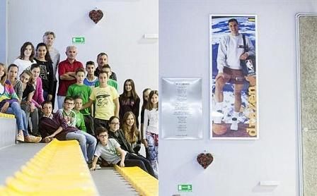 "U dvorani Osnovne škole 'Ravne njive' u Splitu koja nosi ime Dražena Petrovića i u kojoj djeluje Školsko sportsko društvo 'Dražen Petrović' danas je polaganjem vijenca uz spomen ploču i veliku fotografiju prerano preminulog proslavljenog košarkaša te revijalnom učeničkom utakmicom obilježena pedeseta obljetnica njegovog rođenja.