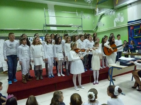 Prvo su uletile pahuljice od uči Vilma Rađa koje su resitilale a posli je ulet bija plesni žemske od ući Anita Jukić. Došlomije da uletin među njih i zabalan. A ka to pari lako ali nije. Vidili smo mi kako su svi imali live noge kad su provavali ovih dana i oni šta su resitilali i glumili su ono ka gledali okolo a ono danas je sve bilo picikato (ovo van znači lipo).