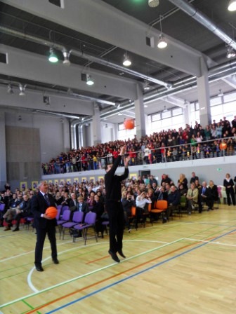 Ubacivanjem svečane lopte u koš otvorena je školska sportska dvorana naše škole! Svečanu loptu ravnatelju gosp. Miljenku Bitangi i don Šimi uručila je zamjenica gradonačelnika gospođa Anđelka Visković. U prigodnoj svečanosti otvorenja dvorane sudjelovali su brojni učenici naše škole, ali i posebni gosti izvođači koji su svojim točkama uveličali cijelu priredbu.