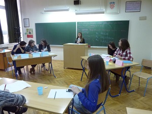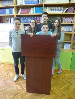 Među deset pobjednika prvoga kruga bila je i naša debatna ekipa koju čine Ivana Kristić (7. d), Ivan Gabela (7. b) i Domagoj Katić (8. a) te njihova mjeriteljica vremena Magdalena Bugarin (7. d). Ivana, Domagoj i Ivan uspješno su surađivali, dogovarali i planirali svoje napade i obranu te su ih vješto proveli u svojim govorima, kako je to procijenila sutkinja Davora Radić, prof. iz OŠ „Brda“. Očito je, osim njihove talentiranosti, do izraza došla i marljivost i motiviranost naših debatanata koji su se od početka listopada pomno pripremali uz pomoć svojih kolega iz debatnog kluba (Magdalene Bugarin, Mije Vrdoljak, Ante Sanadera, Anđela Muslima i Branka Bulića), svoje voditeljice Dubravke Katačić i njezine pripravnice Petre Katavić, koje su ih učile osnovama debatiranja i vodile kroz proces istraživanja, planiranja i organiziranja debatnih govora.