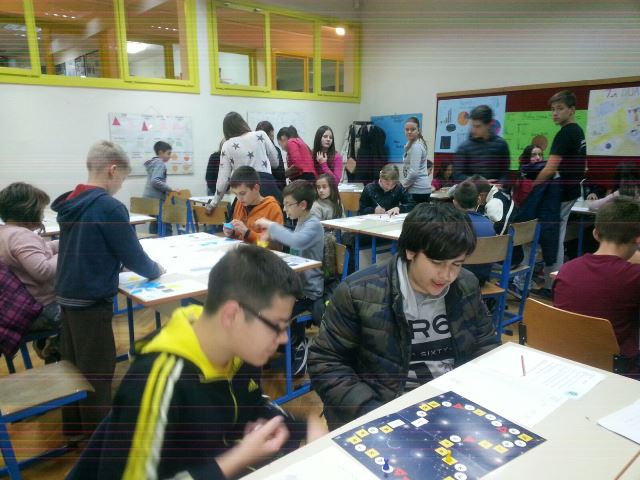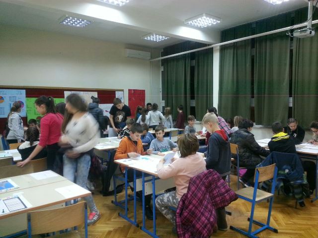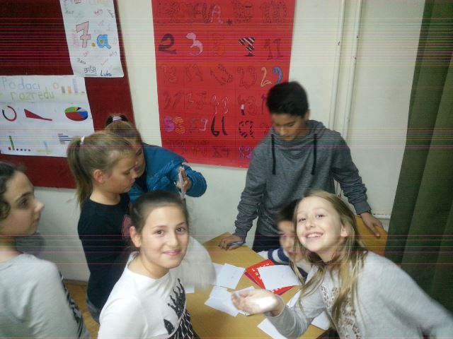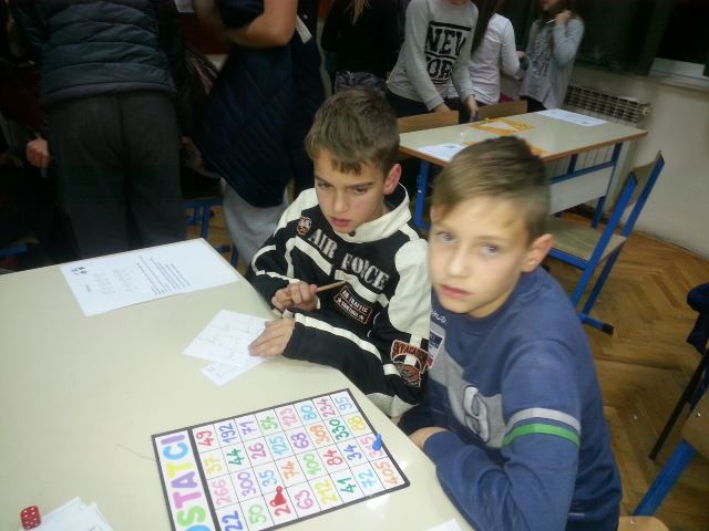 jedva san dočeka ić na to. mater zableušila, znamenuje se i nemore doć sebi da ja jedva čekan nešto šta ima veze sa matišon. skocka san se i sredija kosu. doša san među prvima. tamo su već bili višić, ona umisto bronze, šitunka i lovrićka. čoiće šta su sve složili koe igrice i mozgalice i svašta šareno i zanimljivo. nisan zna di ću prije. bilo je ful dice i nekih uča i šor ravnatelj. svi se nešto rješavali. krenija san otpočetka. uša san kod višića i ove umisto bronze. oni su bili u tekničkon. i tamo san bloka. brojia san, mozga i smija se. višić me pohvalija jer san ja mališ a njegovo je za velike. pasan onda otiša kod lovrićke (baš u njenu učijonu) die bija mađioničar sa kartama i pogađa mi je sve karte i nisan ga skužija. onda san slaga slije oblike geometriske i igra san sudoku - toe ono sa 6 brojeva šta moraš složit gori doli i okolo. skvičali su neki jer su se natjecali u brzini sudokua. igra san igrice sa pijunima isto. onda san napravija ulet kod šitunke (baš u njenu učijonu). ona uvik ima mozgalice za poludit i mora san čitat zadatke i umorija san se. i igra san neke igre sa plastičnin malin pakovima. i neke drvene kolutove san slaga na tri štapa. itu su skvičali neki jer su se takničili u brzini. uče su šetale okolo i pomagale. i svi smo se izredali svugdi i gušta san. oće opet bit dogodine? oće mi moja uči dat peju iz zalaganja?