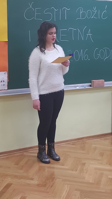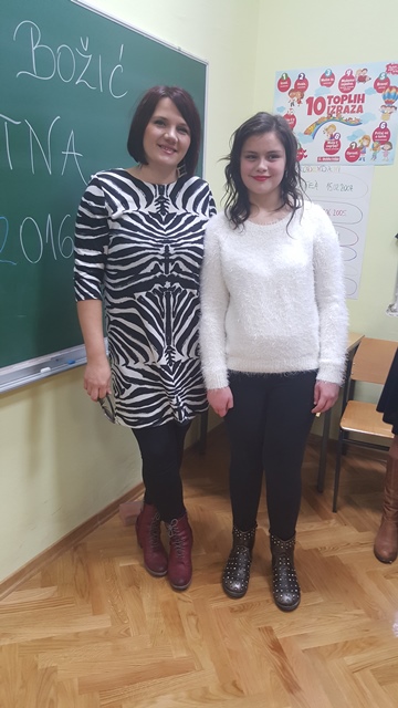 Posebna skupina djece sa svojom učiteljicom uvijek napravi posebno božićno druženje. Skupe se tu naš mali razred, njihovi roditelji, braća i sestre, učiteljica Ljiljana, ravnatelj, stručna služba, razrednici i još pokoji gost. Djeca nam pokažu što su naučila tijekom godine a nakon toga se svi pogoste kolačima i pićem. Ova priredba bila je posebna jer se od naše škole pomalo opraštaju osmaši Maja Šimičić, Nikolina Relota i Marin Pelicarić. Oni su još malo s nama, zaželimo im uspješno daljnje školovanje i sretno odrastanje!