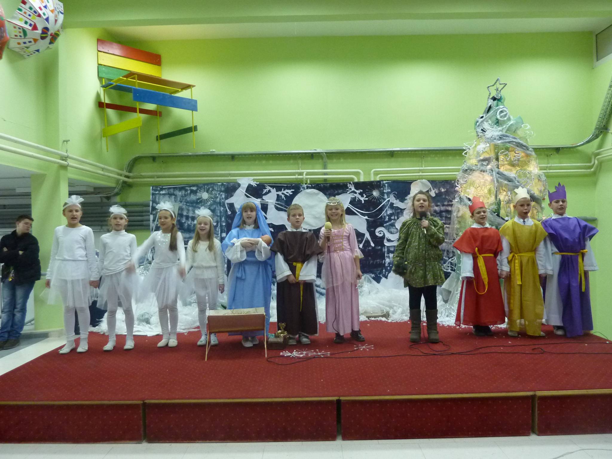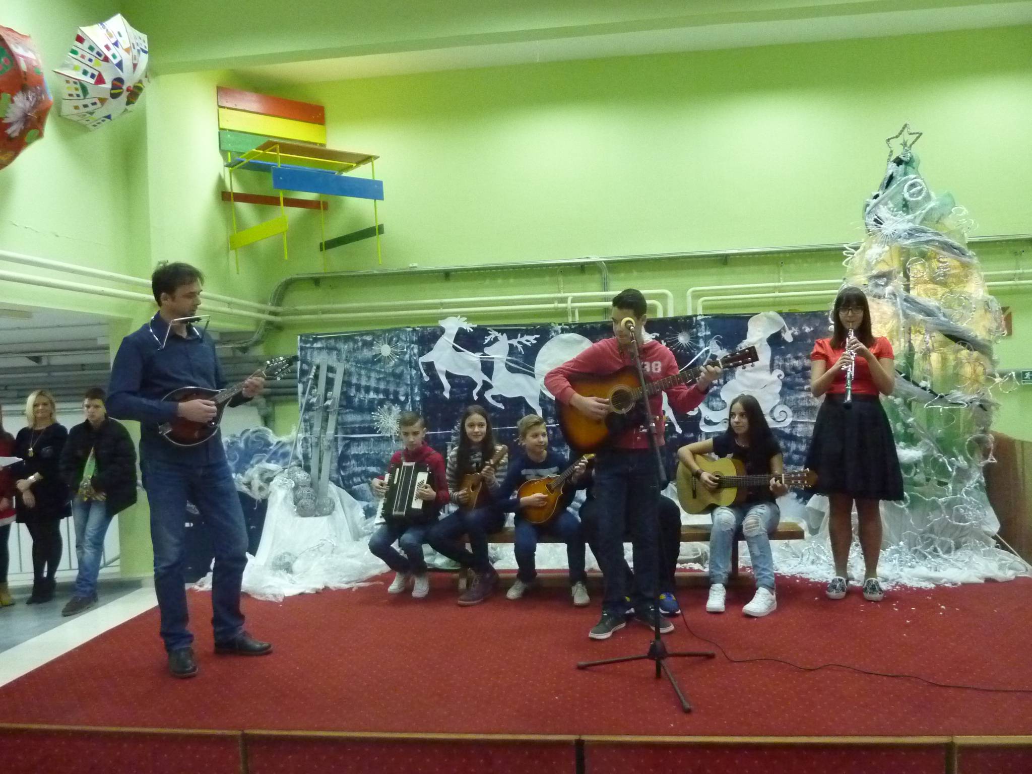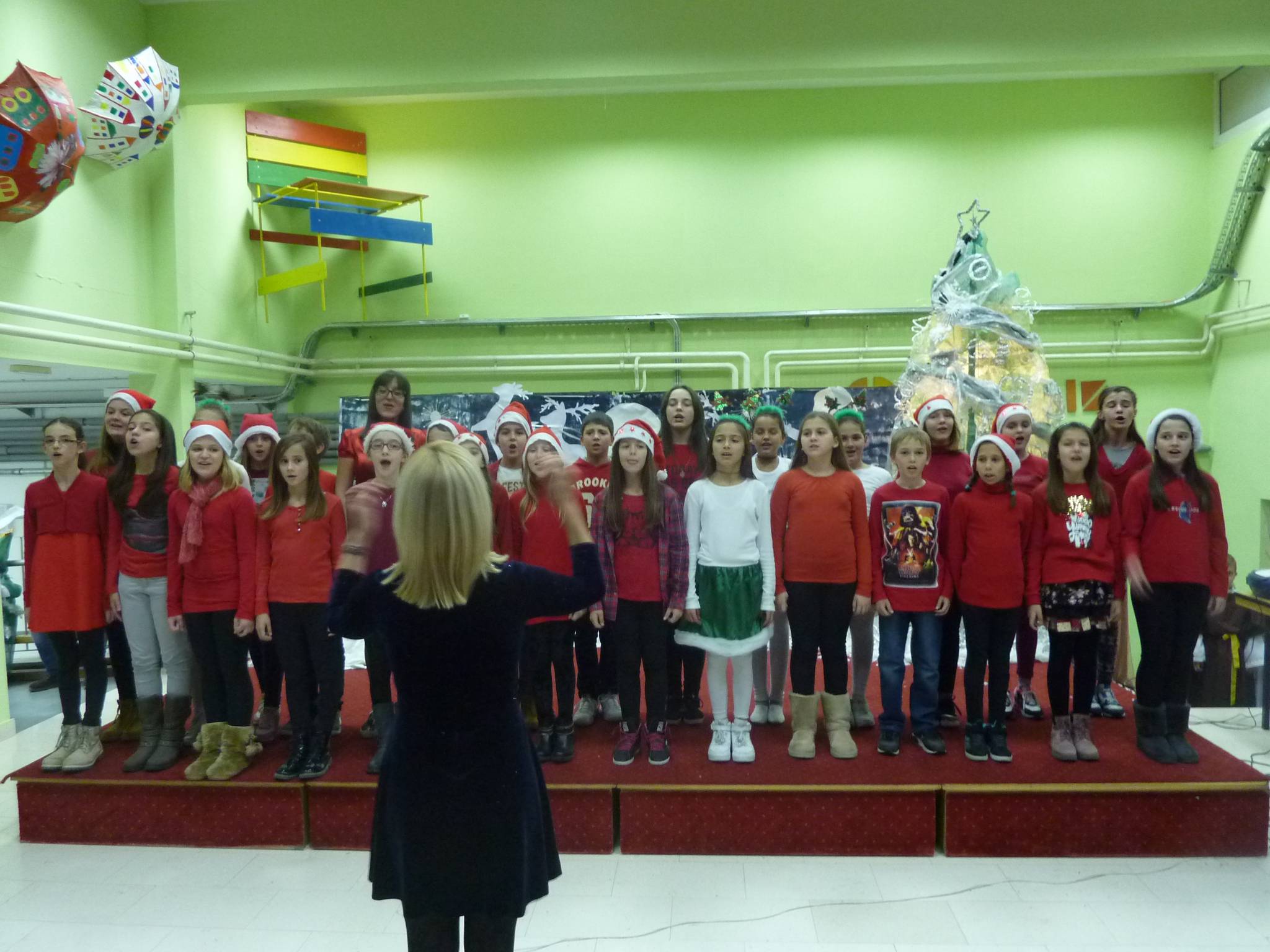 Program je započeo u 18 sati prigodnim govorom gospodina ravnatelja koji je toplo pozdravio prisutne i zaželio im sve najbolje povodom nadolazećih blagdana. Tijekom priredbe isprepletale su se zabavne plesne točke, igrokazi, recitacije te pjesme školskoga zbora i orkestra koje su zajednički pripremali naši vrijedni nastavnici i učenici. Rasplesale su nas učenice 4. a i 4. c razreda pod vodstvom učiteljica Tereze Gustin i Sanje Krmek. Mali glumci iz 3. b ispričali su se knjigama od kojih ćemo se neko vrijeme odmoriti, oni iz 1. b ispričali su nam božićnu uspavanku, a Pahuljice iz 2. a odvele su nas u svijet božićnih snova. Sve pohvale njihovim učiteljicama, Jadranki Krnić, Branki Grčić i Danijeli Gudelj, koje su u djeci prepoznale talent i marljivo ih pripremale za nastupe koji su, sudeći po reakcijama publike, bili iznimno uspješni.