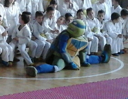 Danas su mi neke prike iz razreda polagali pojas na karateju pa san isa u dvoranu gledat ih. oni imaju trenige karateja u nasoj dvorani. i tamo su bili treneri, sudac neki ozbiljni, mame tate tete barbe babe dide noni none, i nindzja kornjaca. i moji prike su sad sta su imali bili pojas sad dobili zuti pojas a oni sta imaju zeleni ili crljeni nisu danas polagali. a bilo mi je lipo. pa san van samo tija rec to.