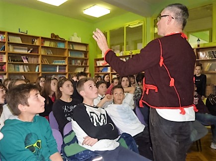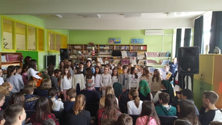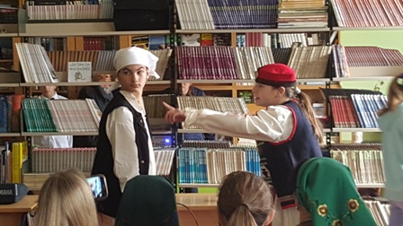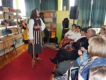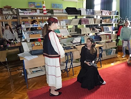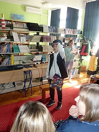 Jedna od naših tema iz književnosti bili su i narodni napjevi - nakon što su Martina Vuknić i Stella Bojić izrecitirale nekoliko neorićkih deseteraca, školskom se knjižnicom zaorio zvuk ojkalice. Predstavnice KUD-a Srce Zagore podsjetile su nas kako su nekad pjevale naše bake, prabake ta kako narodna književnost u sebi krije dušu naroda.