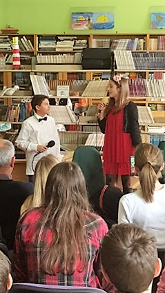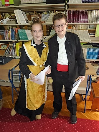 Orlando Dunatov i Laura Kovačević odrecitirali su stihove narodne lirske pjesme Košuta i djevojka i time najavili nastup školskog zbora i njihovu izvedbu poznate narodne skladbe Spavaj mi, spavaj Ančice.