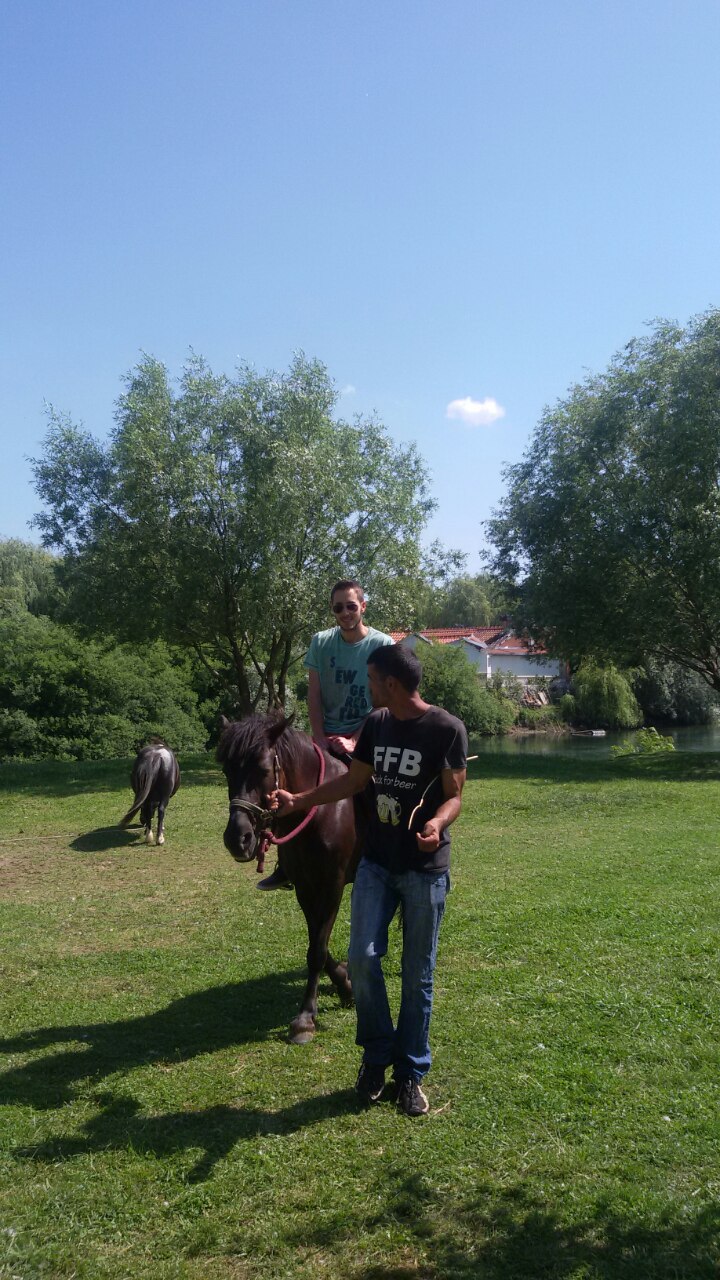 Cetina nam nije bila u blizini, pa smo osvježenje potražili na sinjskoj Pijaci, a tamo kao da je užežin, sve puno svita. Ulogu vodiča preuzeo je drugi fetivi Sinjanin, kolega Norac. Uslijedio je posjet crkvi Čudotvorne Gospe Sinjske i kratka šetnja gradskom jezgrom do Alkara, odakle smo odgalopirali prema posljednjem odredištu našega putovanja, predjelu Gaz na rijeci Rudi.