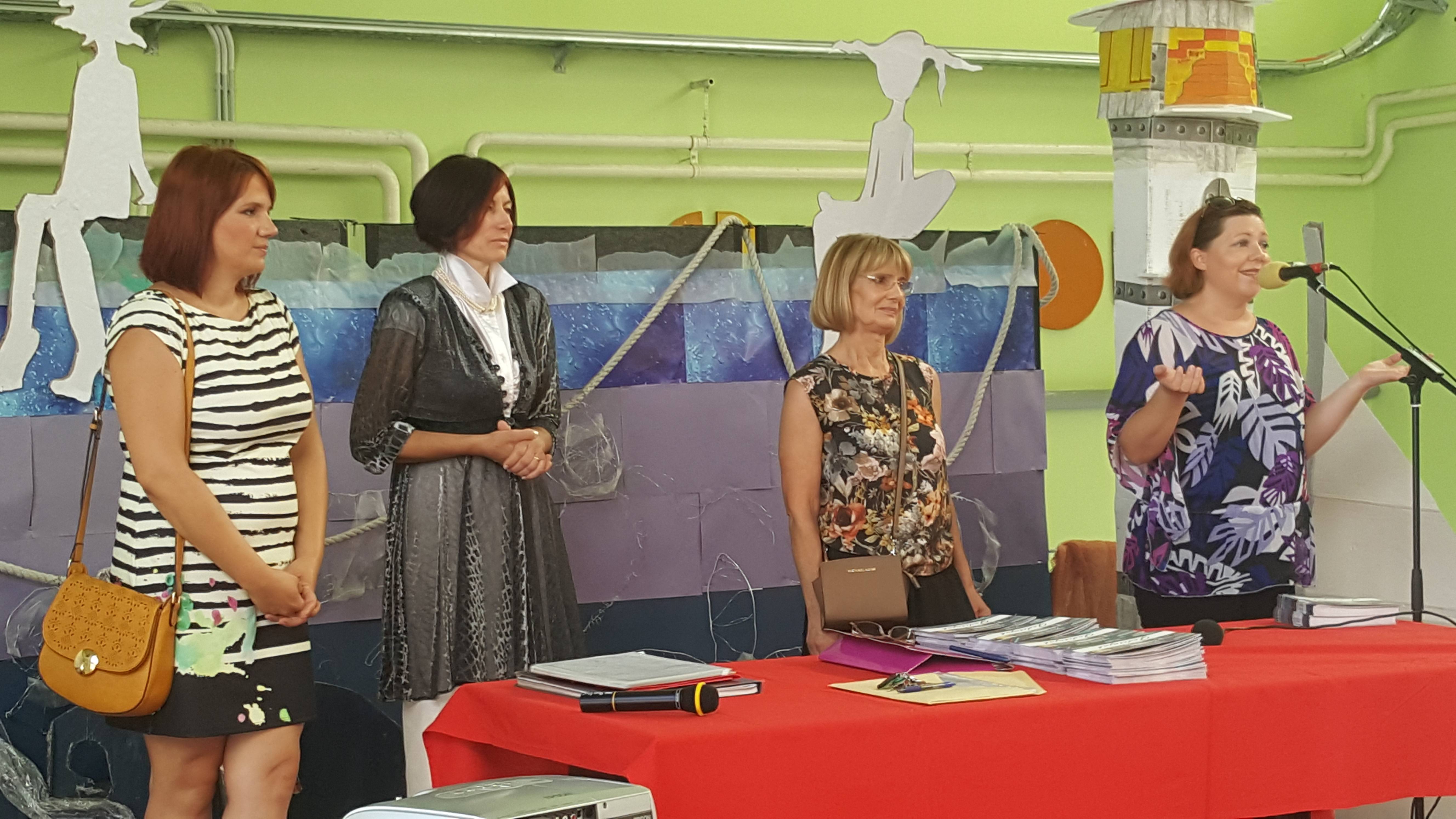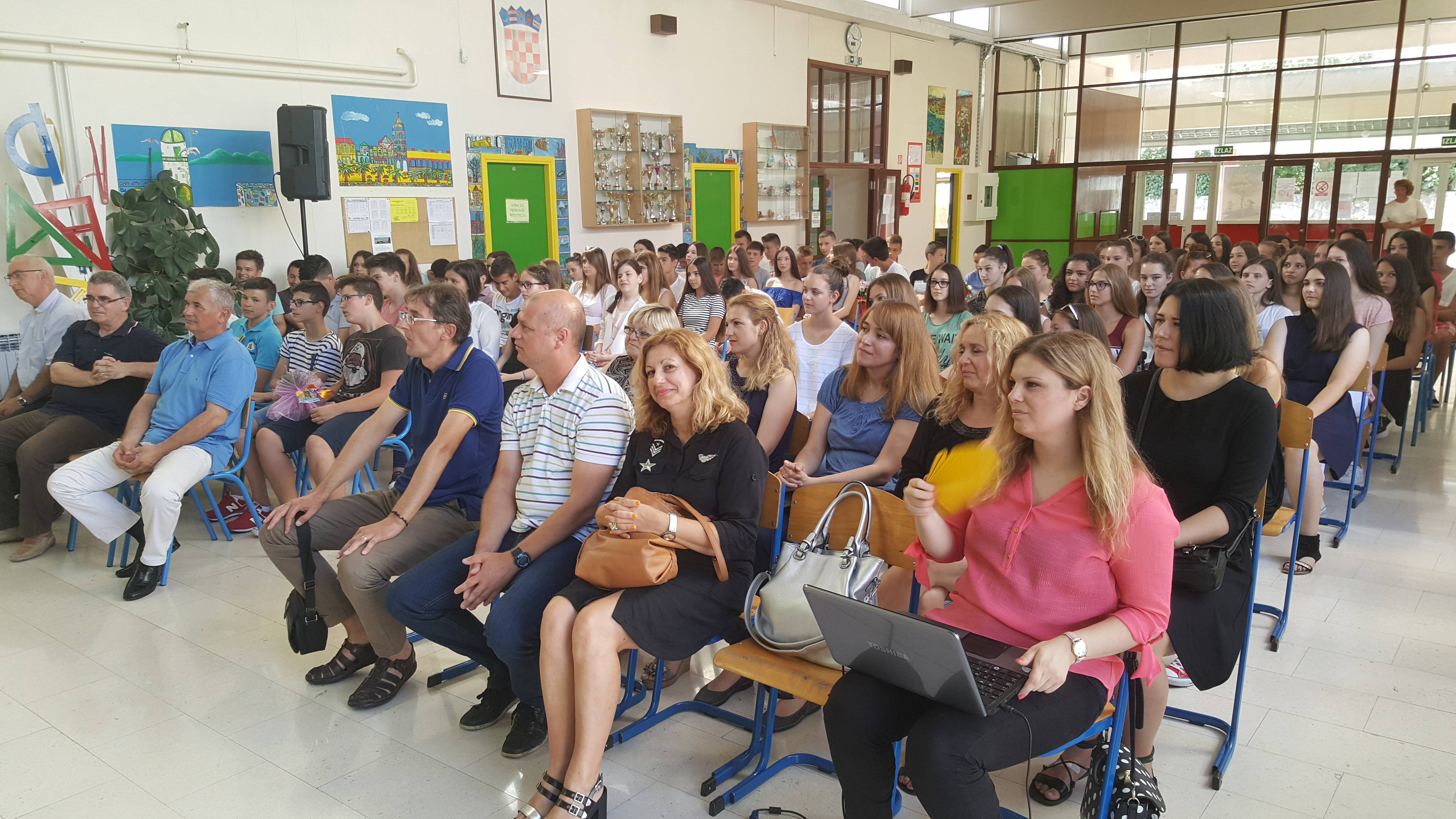 Svečana podjela svjedodžbi započela je u 10 sati u školskom atriju. Okupili su se glavni akteri cijele ove lijepe priče – njih 90 i nas 15-ak. Na licima jednih i drugih znakovi uzbuđenja, tuge i sreće... Jedno je poglavlje napisano, ali mnoga još slijede.