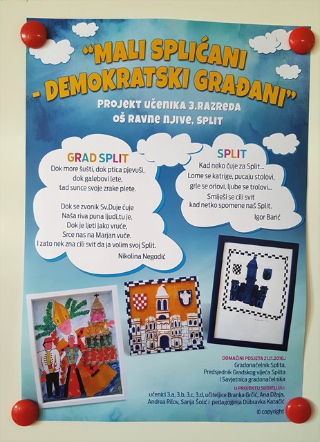Ove godine je u našoj školi pokrenut projekt ''Mali Splićani-demokratski građani'' koji su osmislile učiteljica 3. a Branka Grčić i pedagoginja Dubravka Katačić. U sklopu projekta, a povodom Međunarodnog dana djeteta organiziran je posjet Gradskom poglavarstvu gdje su sudionike projekta svečano dočekali gradonačelnik Ivo Baldasar te predsjednik Gradskog vijeća Boris Ćurković.