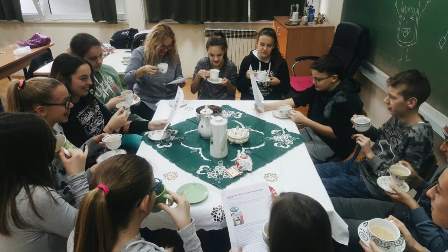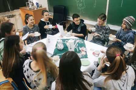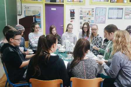 Učenici sedmih razreda su na satu dodatne nastave engleskog jezika zajedno sa svojom nastavnicom Silvanom Jukić organizirali malu čajanku u britanskom stilu. Pili su čaj s mlijekom, jeli keksiće, razgovarali na engleskom jeziku o vremenu ... bas kao pravi Britanci.