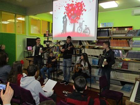 Na samo Valentinovo, 14. veljače, u našoj su se knjižnici okupili najbolji mladi recitatori, svirači, pjevači i glumci kako bi s brojnom publikom svečano proslavili praznik ljubavi. Večer ljubavnih melodija i stihova nazvanu ''U ime ljubavi'' osmislila je nastavnica Antonela Berić, a pridružili su joj se nastavnici Zlatka Bakotić i Zlatko Norac sa svojim talentiranim glazbenicima. U nastavku pogledajte fotografije.
