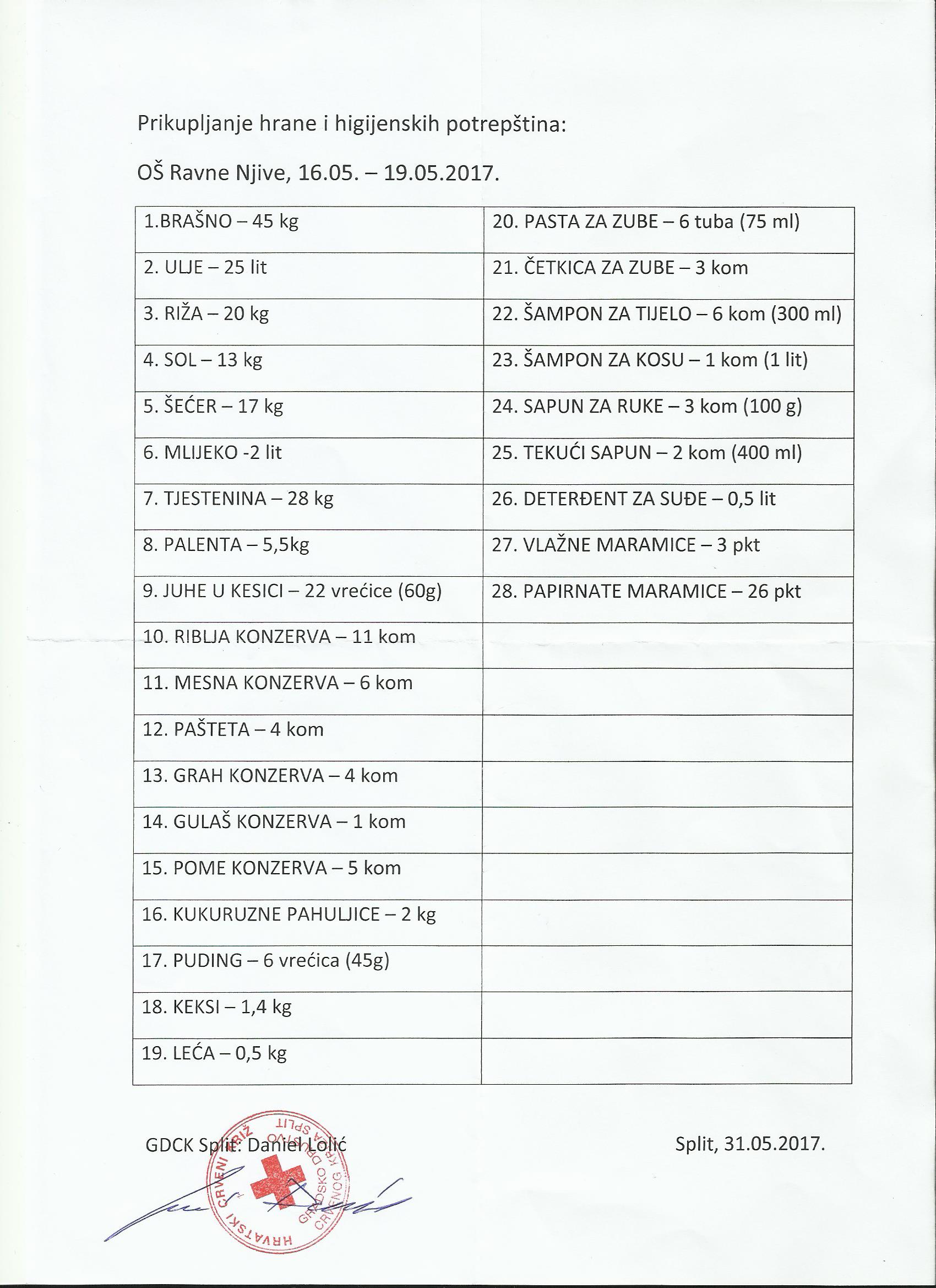U projektu ''Humanitarni paket za Dalmaciju i Primorje'' Gradskoga društva Crvenog križa Split naša je škola sudjelovala 16. – 18. svibnja te je prikupljena velika količina hrane i higijenskih potrepština. U nastavku pogledajte koliko je točno prikupljeno. Hvala vam, učenici!