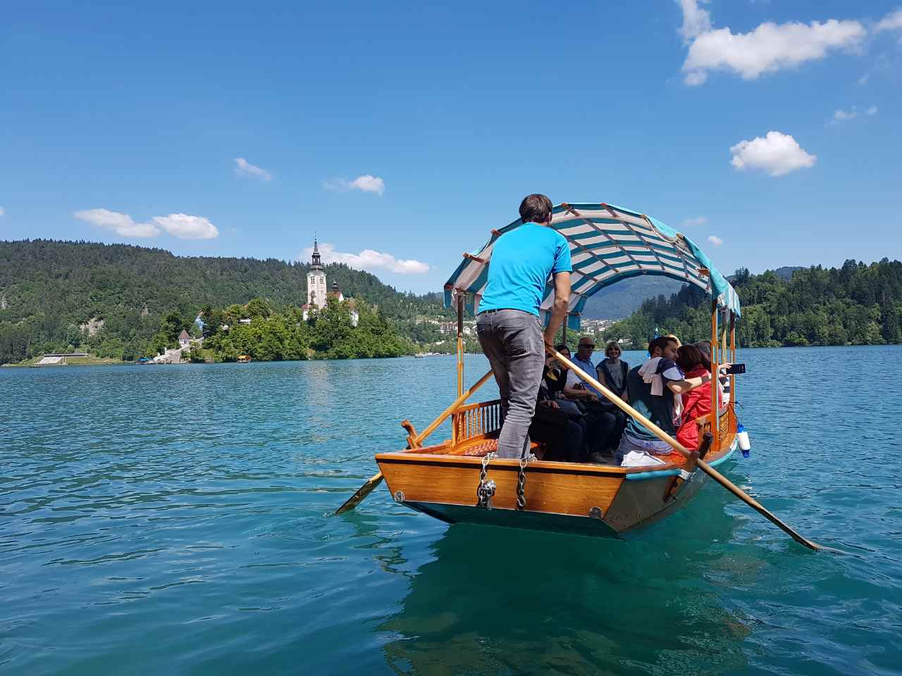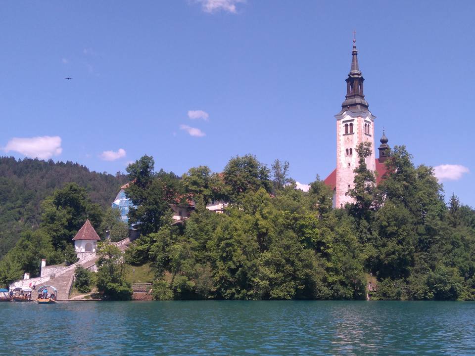 Ubrzo je mašta postala stvarnost iako nas je predivni Bled na trenutke vraćao u svijet mašte svojom nestvarnom ljepotom. Očaravajući prizor – jezero u podnožju Alpa, u daljini se nazire dvorac na 130 metara visokoj litici, u središtu je otočić okružen zelenilom jezera i drveća, a ispod Titove vile 30 glasnih Hrvata u iščekivanju novoga prijevoznog sredstva – brodića „pletne“ koji vozi do otočića. Iako je omjer Hrvaška : Slovenija – 1185 : 1, ipak nas je ovaj jedan, ali vrijedan slovenski otočić zadivio.