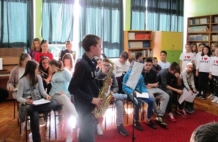 Svečani koncert započeo je uz naš zbor i pjesmu ''Dobar dan''. Nakon vesele pjesme Ana Jukić nam je pročitala kratak uvod i nekoliko činjenica o Svetoj Ceciliji, što je jako zainteresiralo našu publiku. Nakon toga, slušali smo Karla Žamića na saksofonu sa skladbom ''Slavonic dance'' (Anton Dvorak). Neobičan instrument probudio je živost u knjižnici. Nakon saksofona uslijedio je zbor na čelu s nastavnicom Zlatkom Bakotić, a otpjevali su pjesmu ''Hi, hello'' uz nekoliko plesnih koraka. Nakon njih, svirali su Mihaela Boljat na flauti (''Za Elizu'' i ''Teleman''), Ivan Prvinić na gitari (''Poloneza''), Ante Božić Petričević (klavir – ''In the garden'' i ''Study Gnyesina''), Pero Ivačić na gitari (''I can't get no...''), Antony Geets na klaviru (''Sonata'') i još jednom Karlo Žamić na saksofonu (''Mala Latinska Suita'').