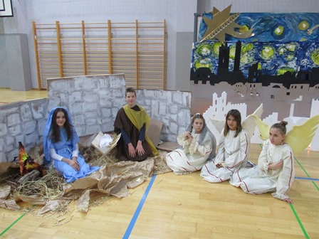 Ovogodišnja priredba bila je uveličana i živim jaslicama koje je osmislila nastavnica Iva Bečić uz pomoć nastavnice Čupo. Likovi Marije i Josipa, anđela i pastira upotpunili su predblagdanski ugođaj, kao i božićne pjesme u izvedbi školskog zbora i klape pod vodstvom nastavnice Zlatke Bakotić.