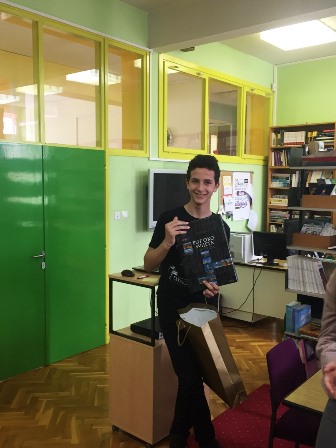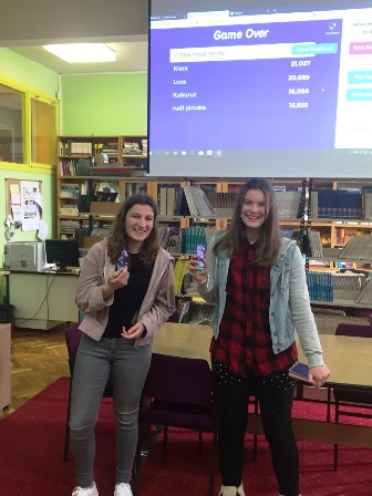 Dan poslije organizirali smo edukativni kviz Volim hrvatski, volim Hrvatsku! za učenike sedmih i osmih razreda. Knjižničarka Ana Bonači je uz pomoć predmetnih nastavnica osmislila Kahoot kviz u kojem je sudjelovalo petnaestak natjecatelja. Pitanja su bila iz različitih područja: književnosti, gramatike, medijske kulture, pravopisa, povijesti jezika... Učenici su uživali u natjecanju, ali i pokazali znanje vrijedno pohvale. Najuspješniji među njima bio je Borna Lazarušić (8. d), a u stopu su ga pratile Lucija Veštić i Klara Milas (8. c). Navedeni učenici nagrađeni su prigodnim nagradama (knjiga za prvo mjesto te čokoladni zečići za 2. i 3. mjestoJ Kahoot se pokazao kao simpatična aplikacija za brzu provjeru stečenih znanja, a međurazredni kviz kao uspješan oblik poticanja učenika za nove načine učenja.